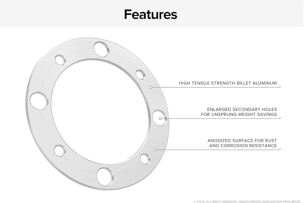 [المواصفات] مجموعة من فواصل العجلات (2) | السُمك: عرض 5 مم (3/16 بوصة) | نمط الترباس: 4 × 156 | تجويف مركز المحور: 131 مم | هذه القائمة للفواصل فقط. لا يتم تضمين مسامير العجلة الممتدة / الأجهزة الإضافية. [المواد والتصنيع] يتم تصنيع الفواصل باستخدام الحاسب الآلي بدقة مواصفات من الألومنيوم الخام عالي الجودة، وتخضع لعملية الأكسدة لمنع تآكل السطح والصدأ.