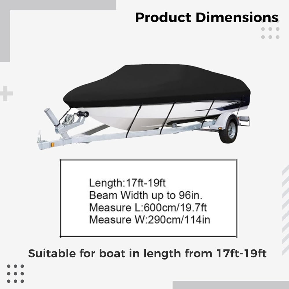 • Versatile Cover: Our boat cover fits bass boats, fishing boats, V-hull Tri-hull runabout, Jon boats, Trailerable boats and so on. Fits boats up to 17 ft-19 ft long and 96 in wide. Please measure your boat size and check the size chart to ensure fitment. Any questions, please send us a message!