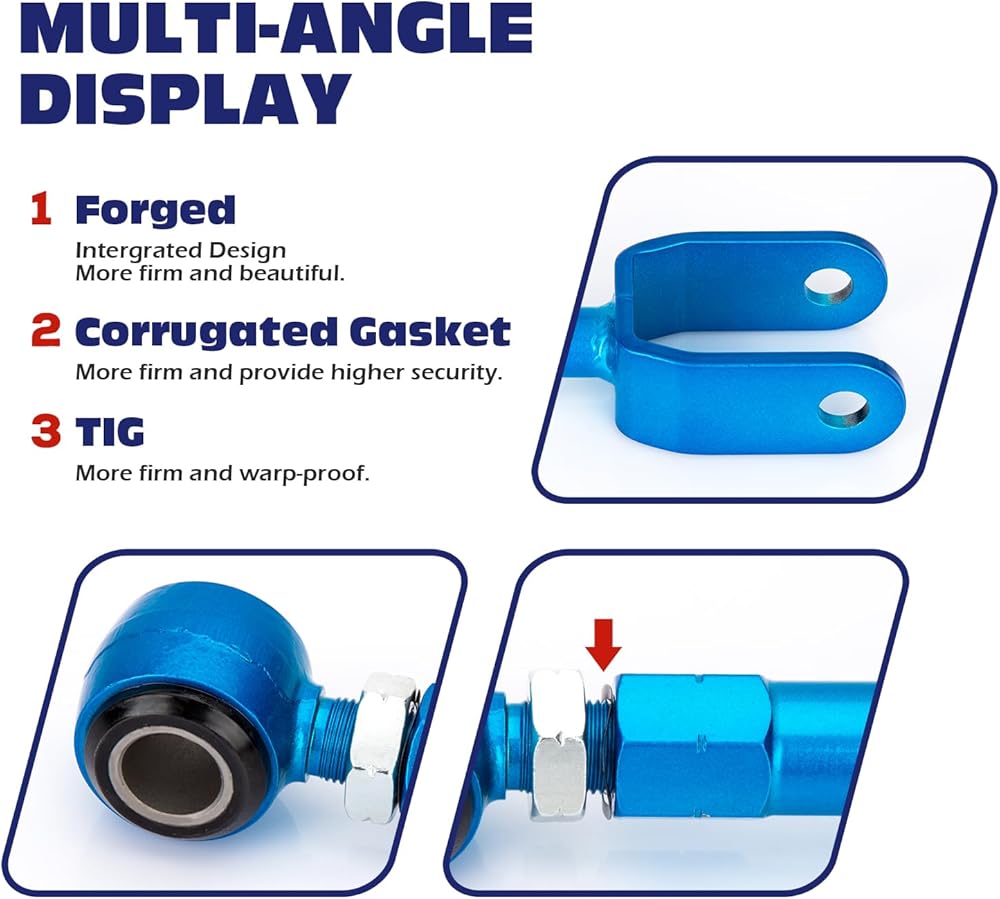 ✔زاوية التعديل: أذرع التحكم الخلفية القابلة للتعديل - الحدبة: -3.00 درجة إلى +3.00 درجة، إصبع القدم: -2.00 درجة إلى +2.00 درجة