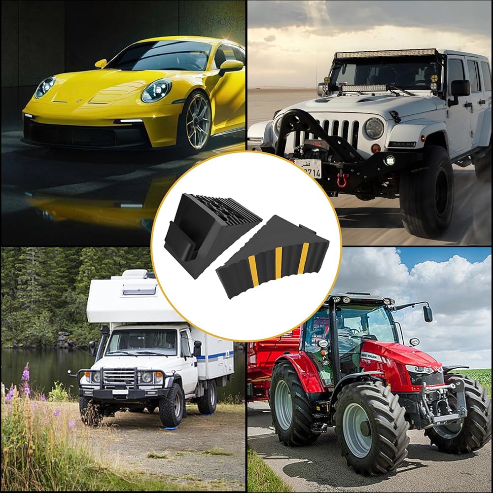 The weight of the wheel block itself plus the pleated anti-slip design can ensure the stability during use. Suitable for any vehicle and any terrain.
