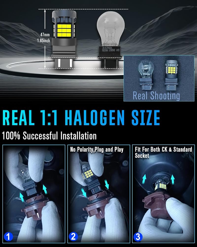 【تركيب لمدة 5 دقائق】 هذه المصابيح العكسية LED 3157 هي بحجم حقيقي 1:1 مع لمبة المصنع، مما يضمن التثبيت الناجح في جميع المركبات. بفضل حجم 1:1 والتصميم غير القطبي، فإن مصابيح الفرامل LED 3057 LED هذه يتم تثبيت المصابيح تمامًا مثل لمبة المصنع. لا يوجد حفر، ولا أسلاك، ولا ضرر، فقط قم بالتوصيل والتشغيل.