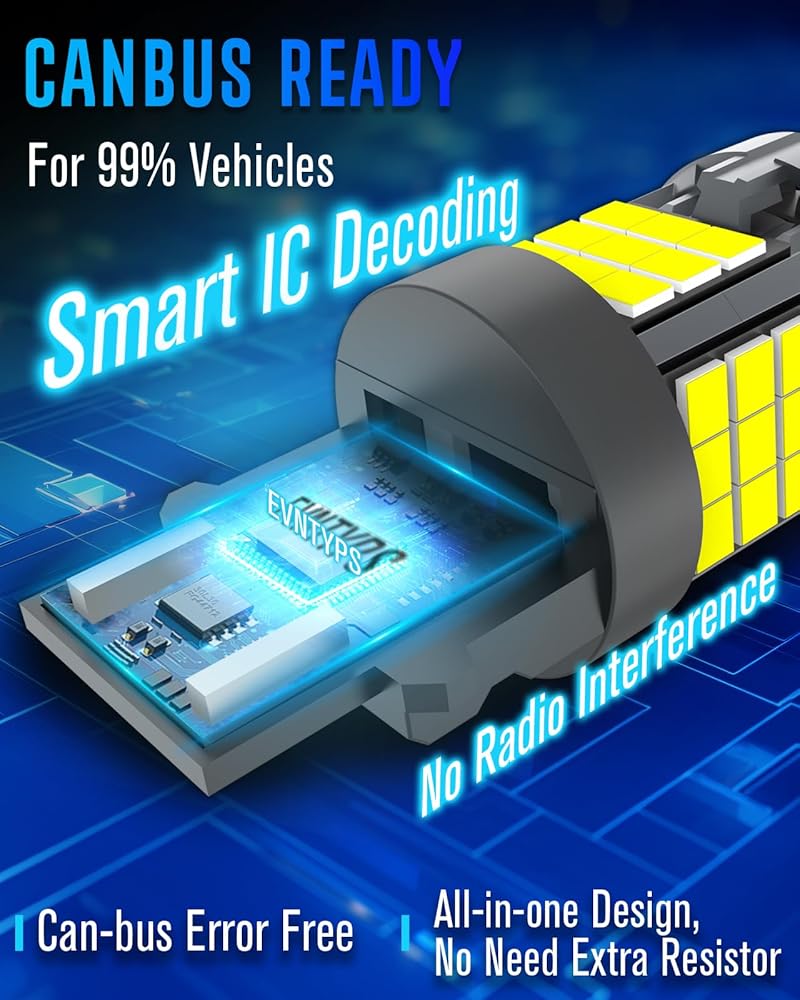 【جاهزة لـ Canbus】 تحتوي لمبة المصابيح الخلفية evntyps 3157 على أحدث مقاوم 2024، خالية من الأخطاء في CANBUS بنسبة 99.5% من المركبات. لا حاجة لشراء مقاومات تحميل إضافية ودوائر تشقق.