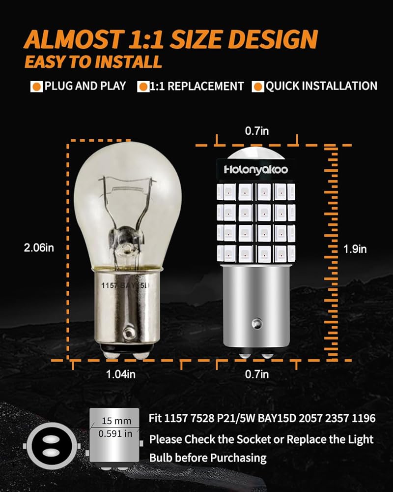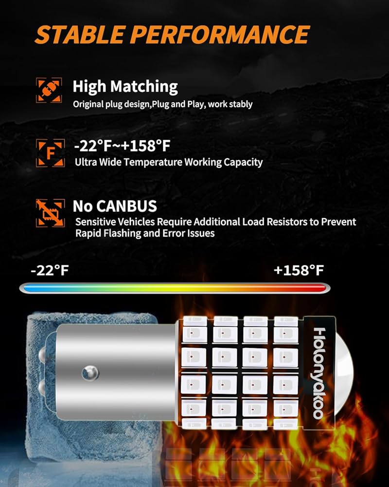تذكير خاص: لا تحتوي لمبة LED 1157a هذه على نظام CANBUS ولا وميض مضاد للفرط. تتطلب بعض المركبات مقاومة تحميل 50 وات 6OHM أو مرحل ومضي لمنع مصابيح إشارة الانعطاف من الوميض بشكل مفرط أو أي رموز خطأ على لوحة القيادة