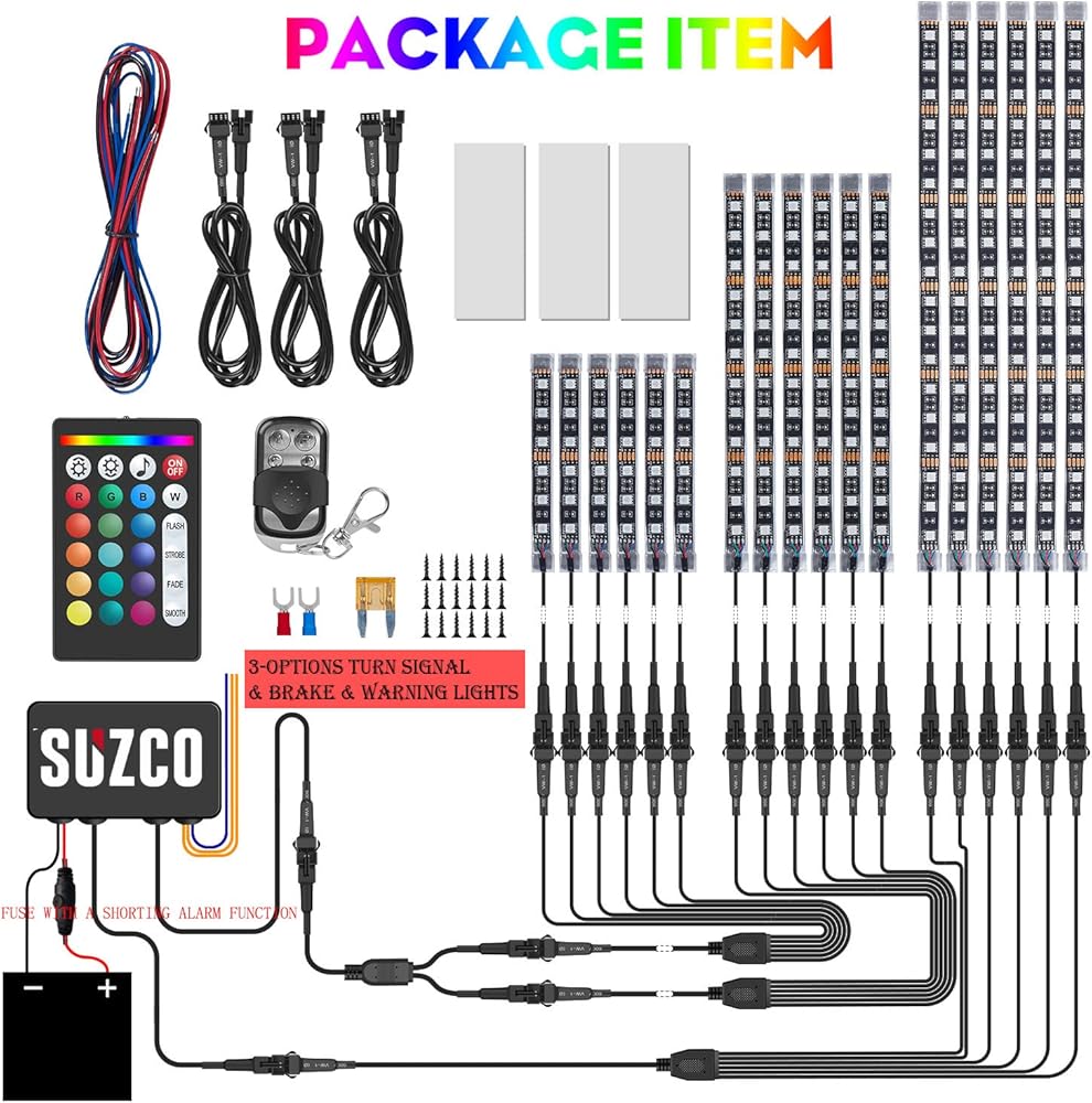 【ميزة 】 【مخزون واضح 】 مجموعات إضاءة LED للدراجات النارية RGB مكونة من 18 حزمة جيدة لدراجتك النارية مع إشارة الانعطاف المخصصة + الفرامل + ضوء التحذير. مجموعة الإضاءة تحت التوهج LED للدراجة النارية هذه مخصصة لك لتعيينها مع إشارة الانعطاف + الفرامل + ضوء التحذير.