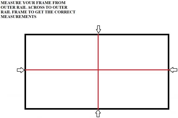 • Measure trampoline from outside frame to outside frame for correct size when ordering