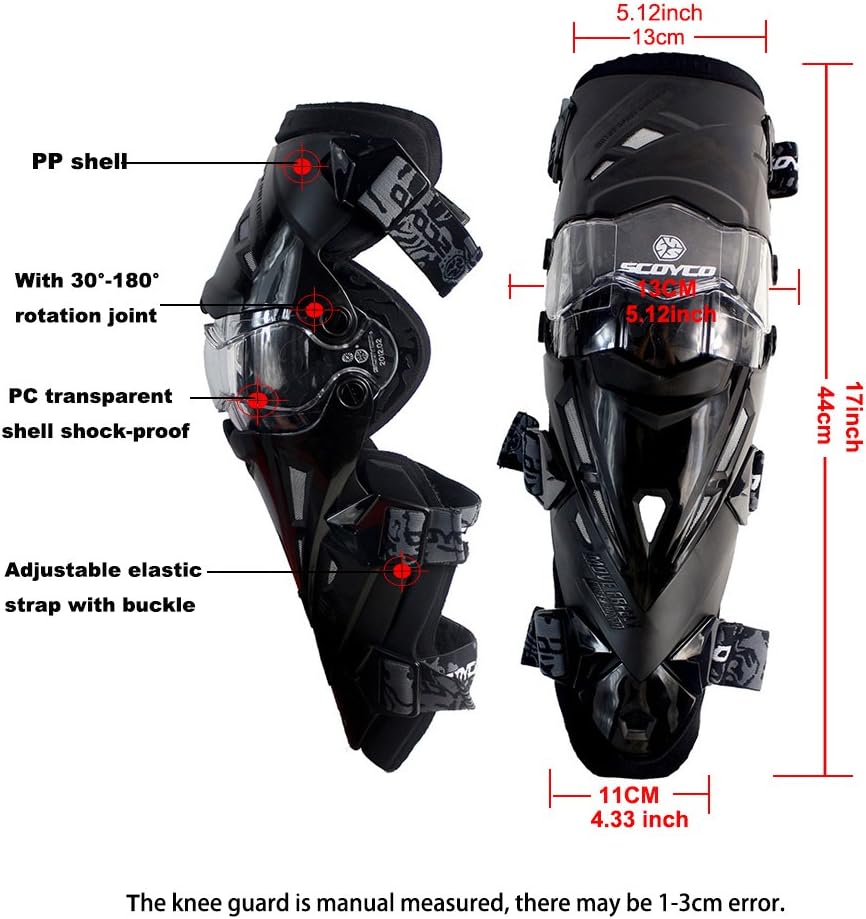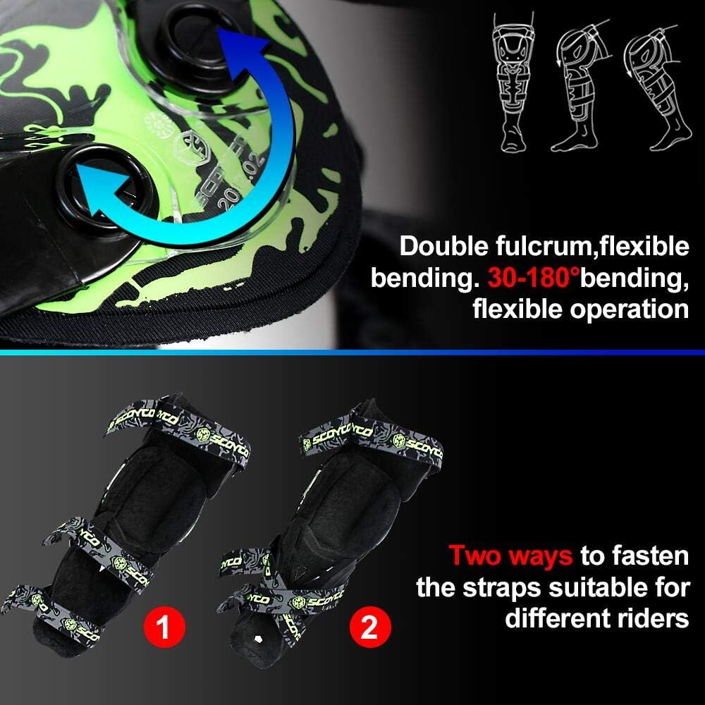 SCOYCO Racing Knee Guards,PP PE Hard Collision Avoidance Crashproof Rotatable Bionic Designed for Moto/ ATV/ BMX (Black)