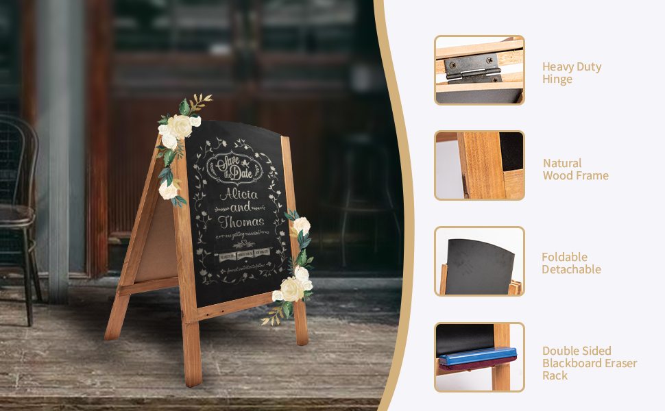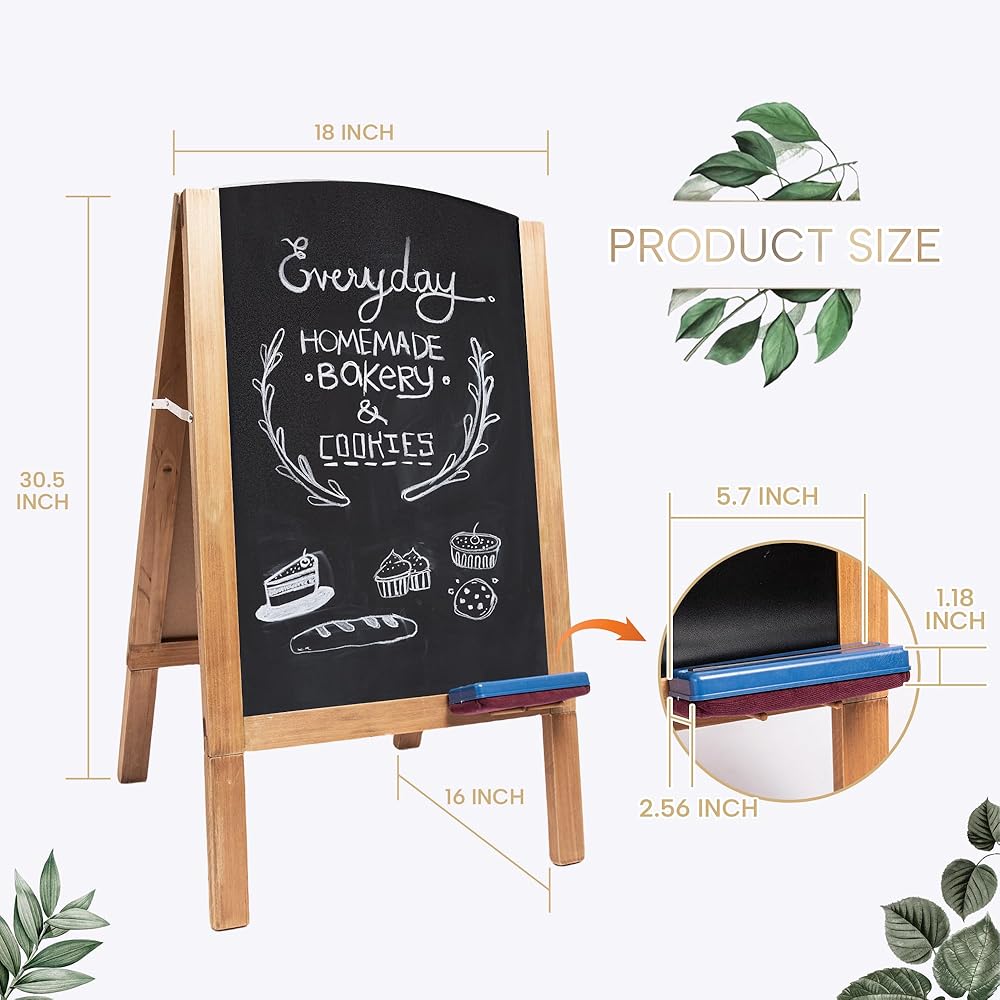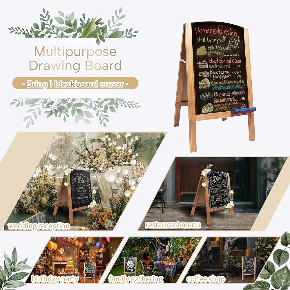 【 سبورة خشبية عالية الجودة】: حامل السبورة الخاص بنا مصنوع من الخشب الطبيعي المتين، وهو قوي ومتين. الإطار الموسع مقاس 1.8 بوصة يجعل حامل السبورة الخشبي أقوى. يضيف النمط الريفي للإطار الناعم شعورًا جماليًا إلى مساحتك. علامة السبورة ذات الإطار A هذه تصمد أمام اختبار الزمن.