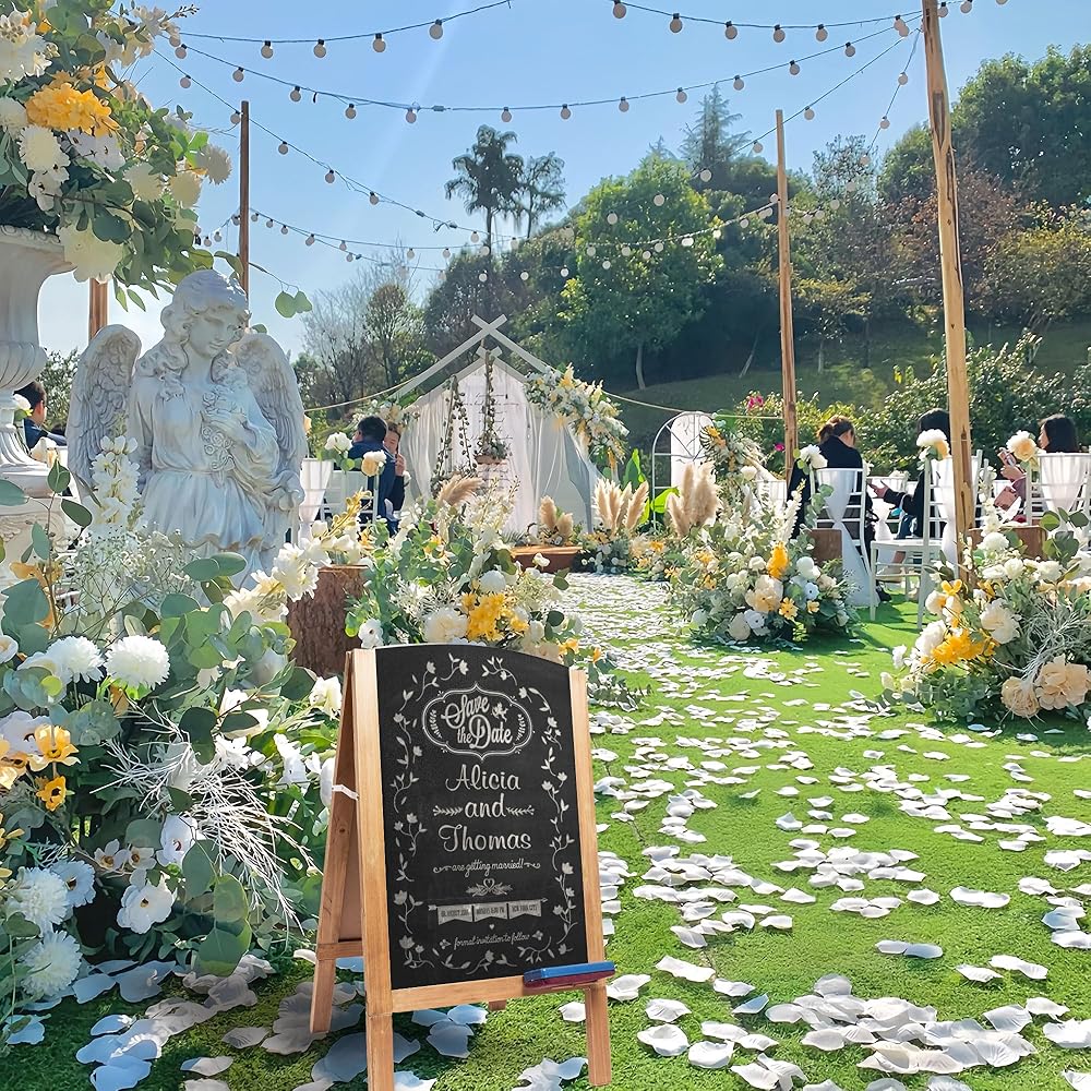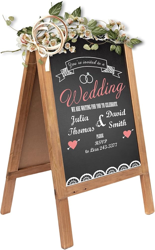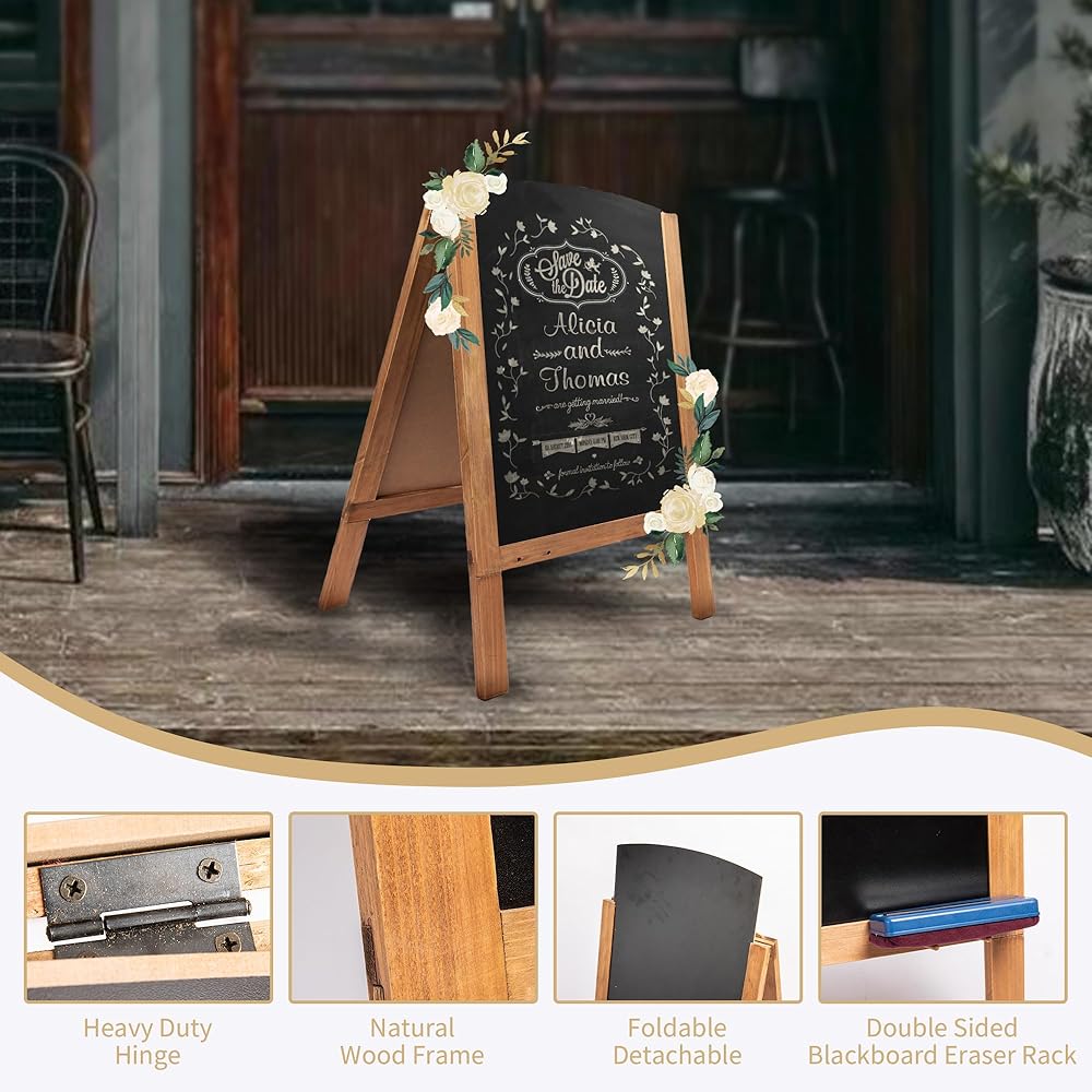 HPC ديكور سبورة طباشير مقاس 32 بوصة × 18 بوصة، لوحة إشارة سبورة على شكل حرف A، لوحة مغناطيسية ريفية مزدوجة الجوانب، سبورة القائمة، علامات لوحة الساندويتش في الهواء الطلق، حامل السبورة لحفل الزفاف أو عرض المطعم