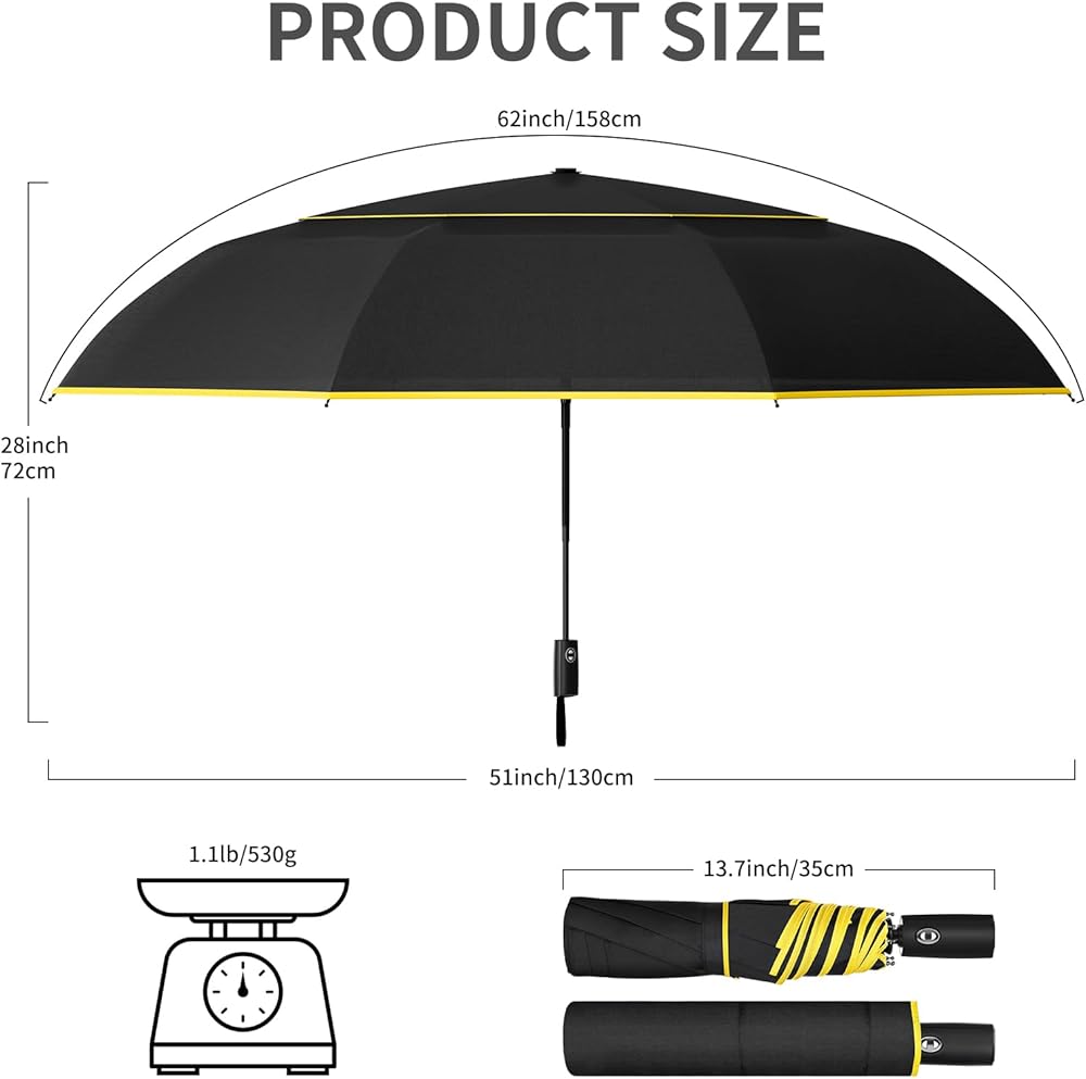 • 【مقاومة للرياح وآمنة】مظلة المطر مقاس 62 بوصة تتميز بتصميم مظلة مزدوجة. تكون الفجوات بين المظلة المزدوجة مسطحة ومانعة للماء في المطر ولكنها تفتح عندما تلتقط الرياح المظلة من الأسفل، مما يؤدي إلى تحرير ضغط الهواء وتثبيط الانقلاب. تساعد مظلة الجولف ذات المظلة المزدوجة على منع الرياح القوية من قلب المظلة من الداخل إلى الخارج. تم تصميم مظلاتنا بأشرطة عاكسة صفراء، لتكون آمنة في الليل وفي الطقس الممطر/الغائم.