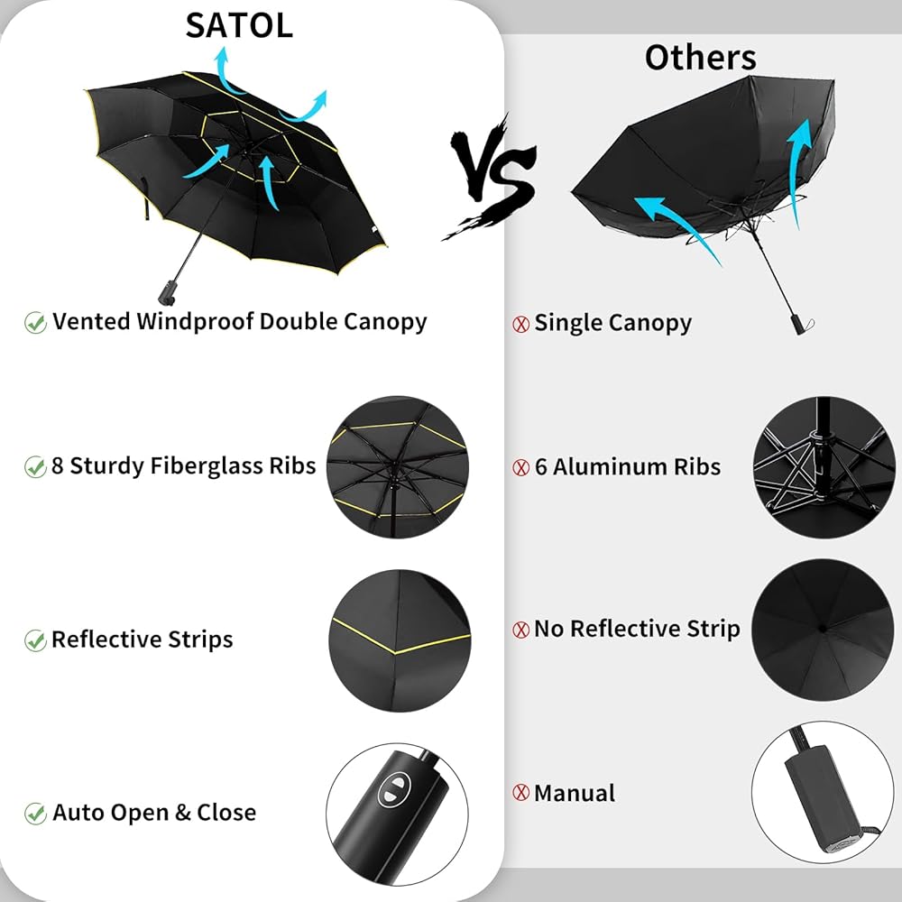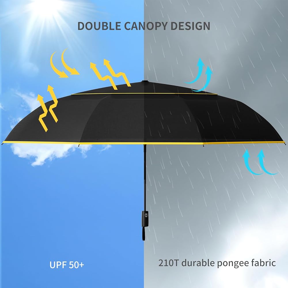 • 【جودة عالية وتصميم فريد من نوعه】مظلة جولف ساتول كبيرة الحجم مقاومة للرياح تحتوي على مظلة بعرض 62 بوصة توفر تغطية وفيرة. مظلة السفر كبيرة بما يكفي لحماية شخصين من المطر. المظلة القابلة للطي مصنوعة من قماش حريري متين 210T مقاوم للماء تمامًا. يمنحك هذا القماش المضاد للأشعة فوق البنفسجية بعامل حماية من الأشعة فوق البنفسجية 50+ الحماية المثلى خلال الأيام الحارة.