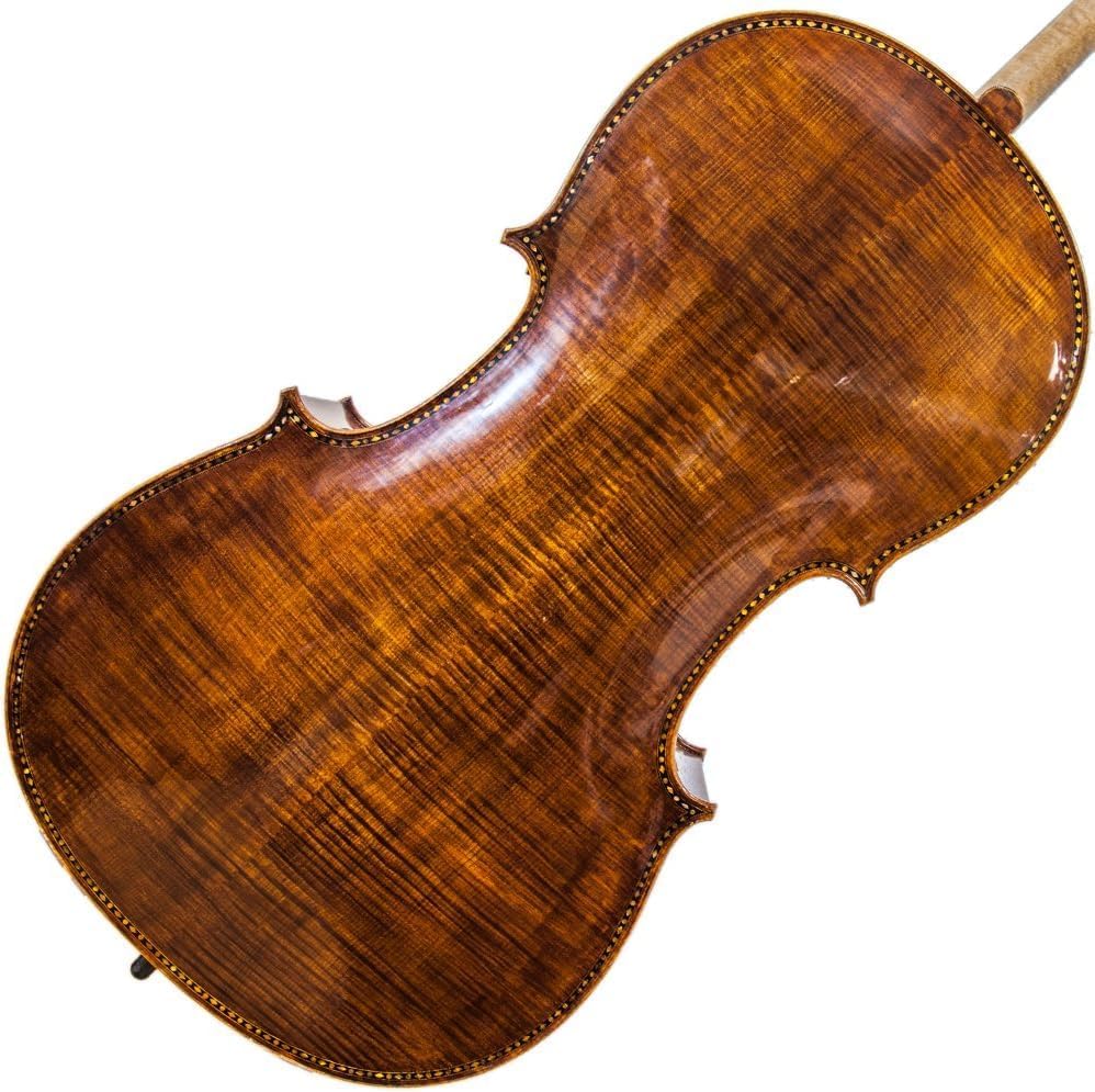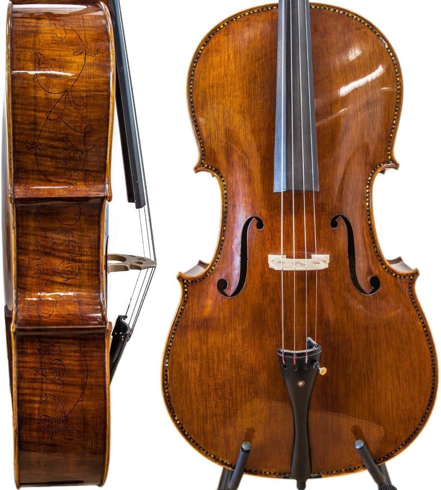 This Cello is professionally set up in California and ready to play, hand carved with oil varnished finish, 100% hand-carved spruce top and 100% hand-carved with highly flamed maple back, sides, neck and scroll.