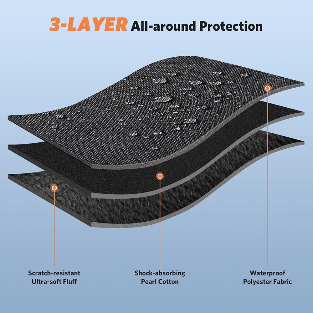 Combined premium polyester, this sleeve features excellent wear resistance, tear resistance, softness. Peral cotton interlayer is thick and shockproof, withstands various drops. Provides your device against scratches, bumps, crushing and shocks.