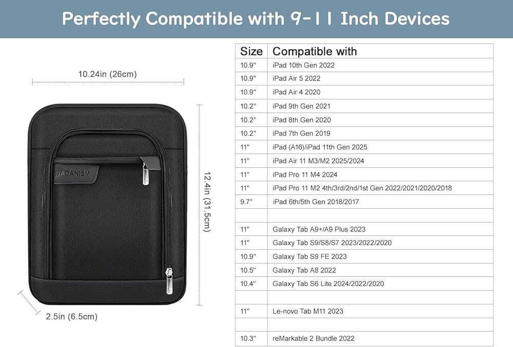 Dadanism Premium Sleeve Case Bag Fits 9-11 Inch Tablets - Simple But Meet Your Every Needs!
