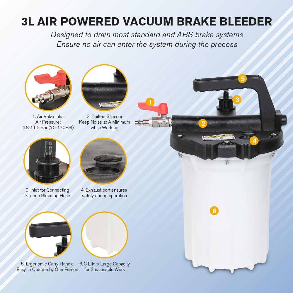 【Durable and Reliable】 : Made with high-quality materials, this vacuum brake bleeder is built to last and delivers consistent results every time, making it a dependable tool for all your brake maintenance needs.