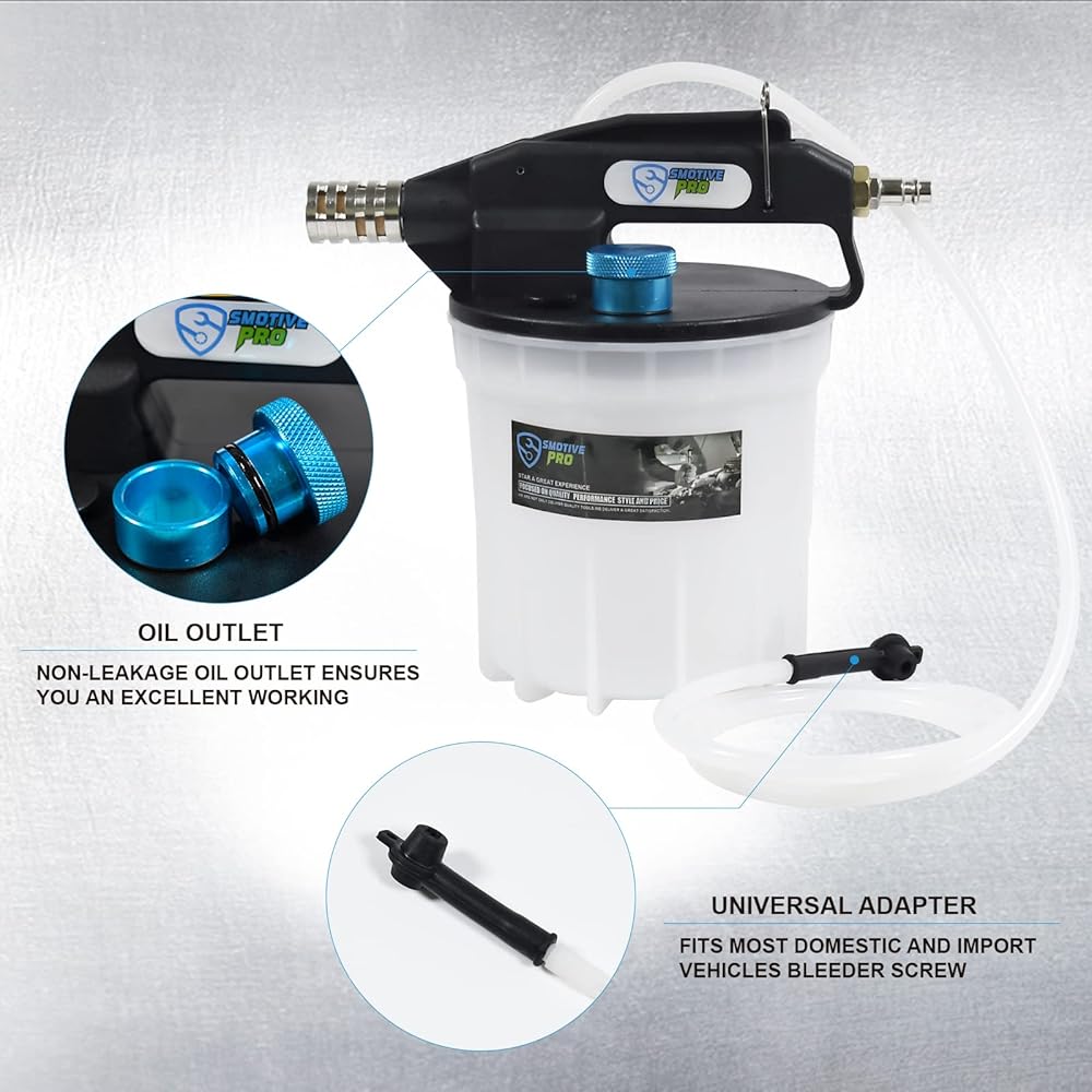 تشغيل شخص واحد: تشتمل مضخة استخراج سائل الفرامل هذه على خزان سائل سعة 2 لتر وزجاجة إعادة تعبئة سعة 1 لتر، وهي مصممة لتناسب معظم تركيبات نزيف زيت فرامل المركبات واستخدامها مع معظم أنظمة الفرامل القياسية وأنظمة الفرامل ABS، ويمكن تشغيلها بواسطة شخص واحد.