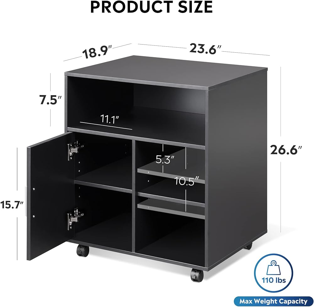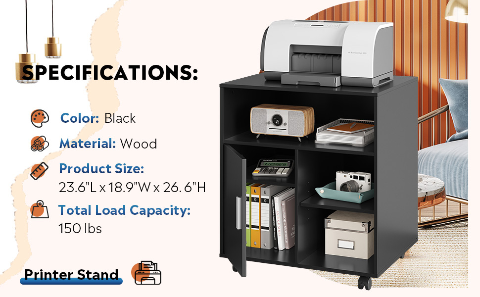 سهل التحرك: يتضمن حامل الطابعة هذا المزود بـ 4 عجلات عجلتين أماميتين قابلتين للقفل لتجنب الانزلاق.