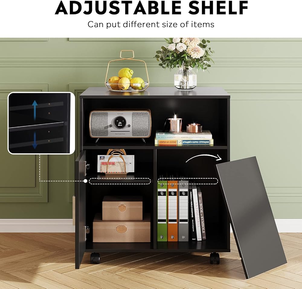 مساحة متعددة: تتميز الخزانة المتحركة بغرفتي تخزين مغلقتين خلف باب واحد و3 مساحات مفتوحة مفصولة برف قابل للتعديل. يمكن تعديل الرف بـ 6 طرق.