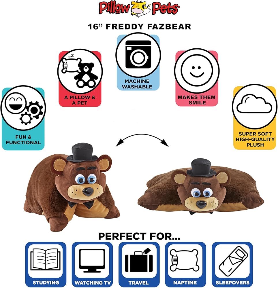 FAZBEAR: Pillow Pets and Striker teamed up to bring Freddy Fazbear from Five Nights at Freddy's into your home as a soft, cozy plushie that everyone can snuggle up with and enjoy. Team up with this cool character for fun & games, and then curl up with this cool character at bedtime - because gamers need sleep too!