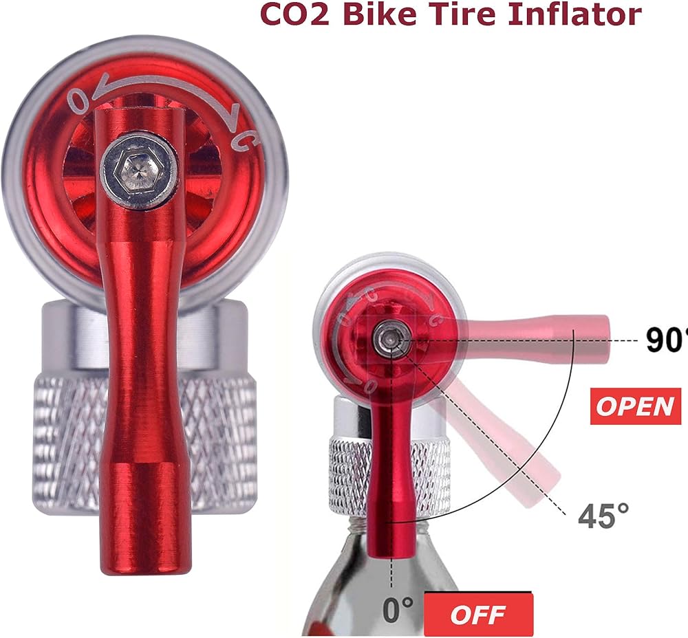 ✨Quick and Easy Inflation: Our CO2 bike tire inflator allows you to inflate a flat tire in seconds, getting you back on your bike quickly. Simply insert a CO2 cartridge (not included) and use the control lever to regulate the speed of inflation for precise control.