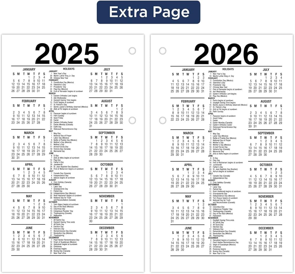 مزايا مريحة - يتم عرض مراجع تقويم الشهر الحالي والماضي والمستقبلي للتحقق السريع من التاريخ والتخطيط المستقبلي. الصفحات تناسب قواعد 17 نمط قياسي مع حلقتين.