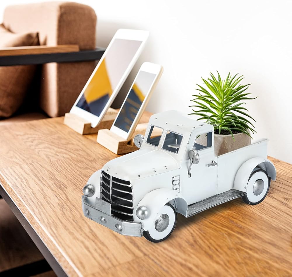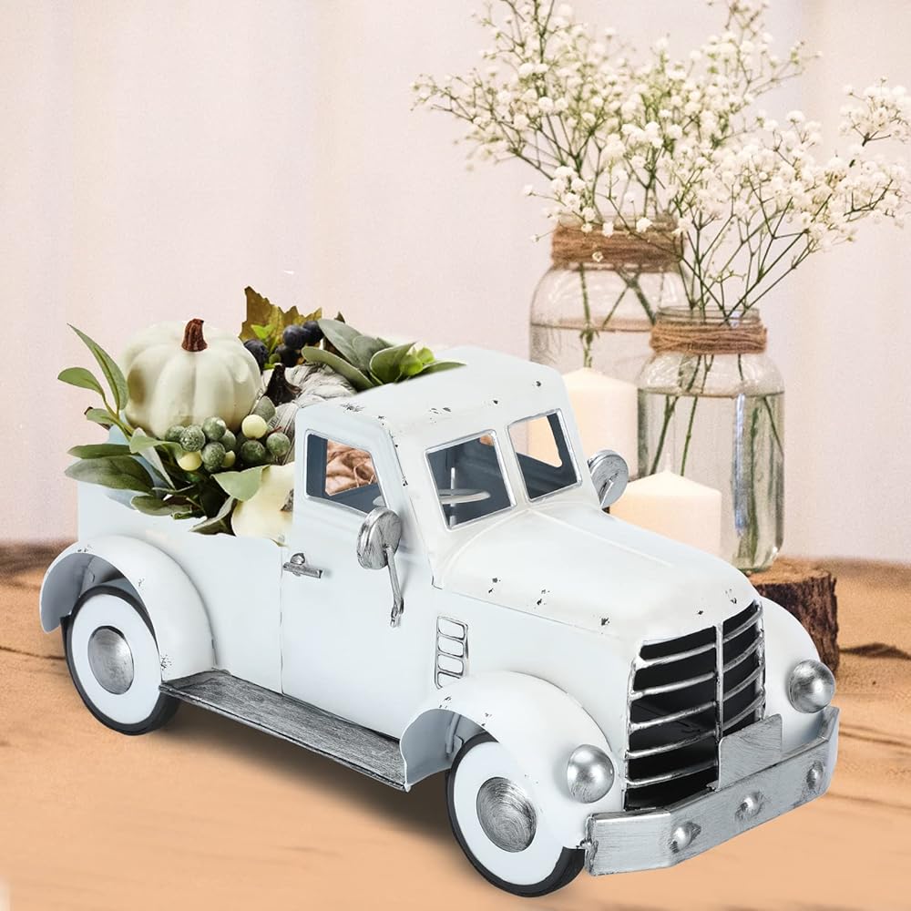 This farmhouse vintage white truck can be used as a decor, truck planter, tabletop storage or gift basket.