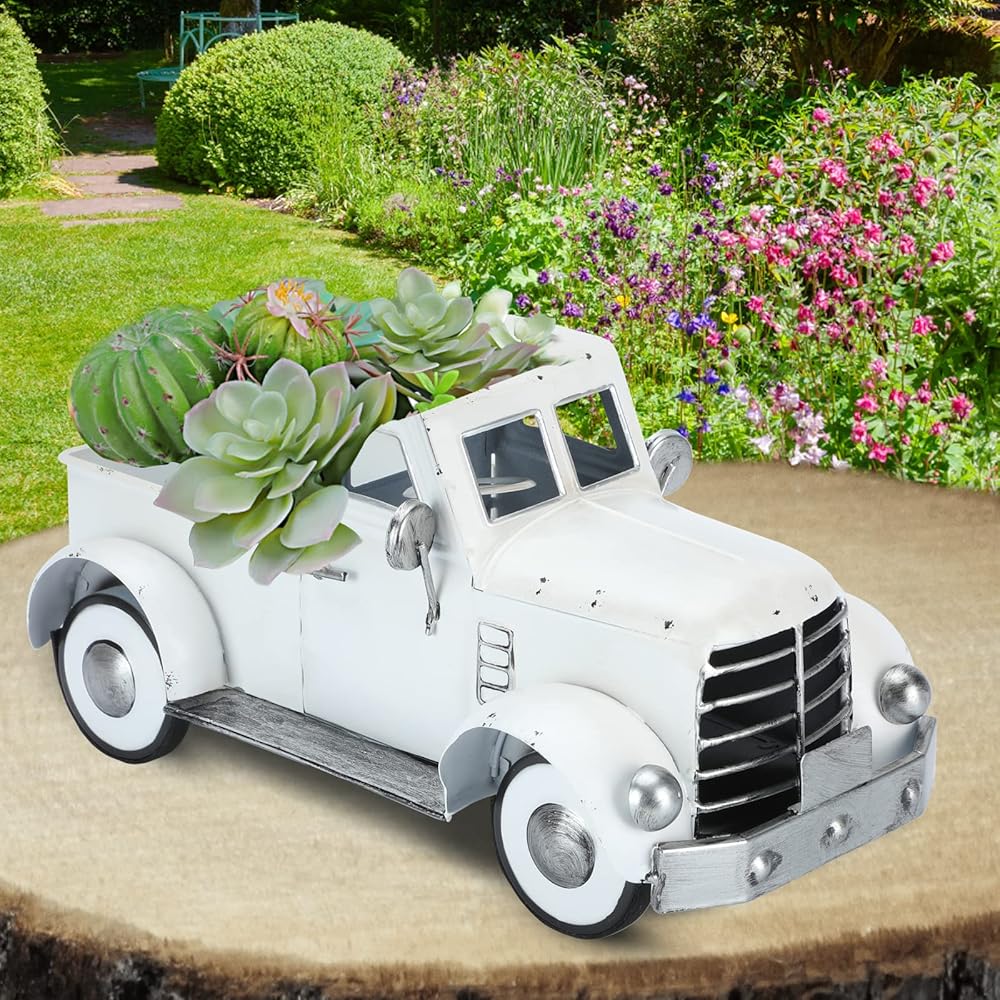 This handmade white truck is going to be a must have for your home and garden decorations.