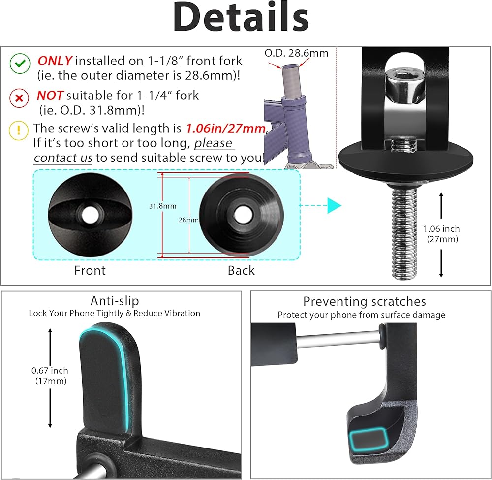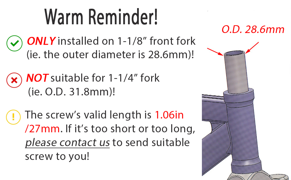 تنبيه: يمكن تركيبه فقط على شوكة 1-1/8 بوصة (28.6 مم)! غير مناسب للشوكة 1-1/4 بوصة (OD 31.8 مم)!!