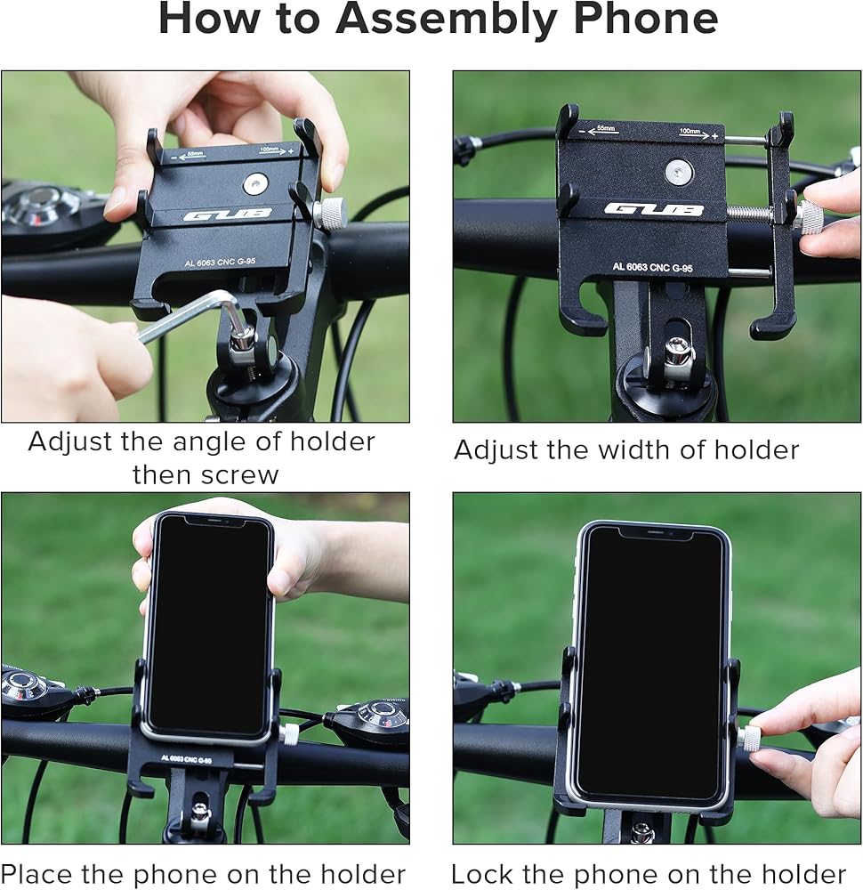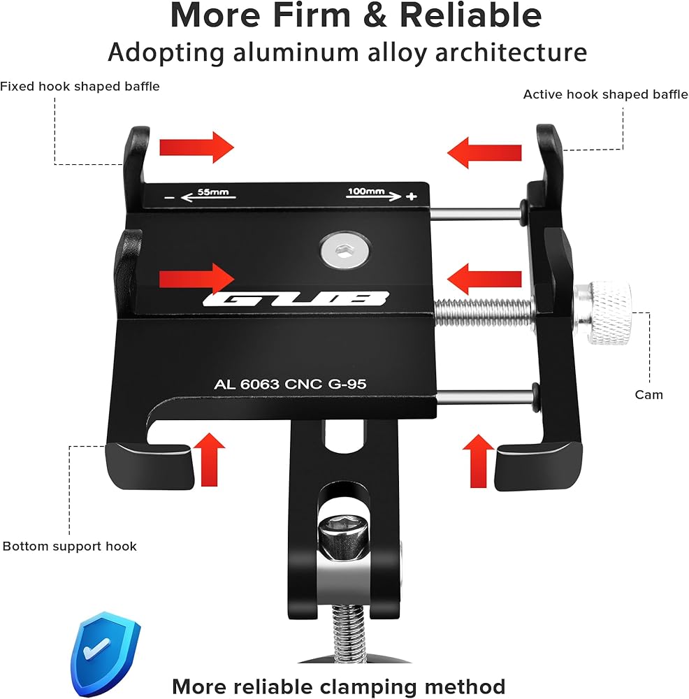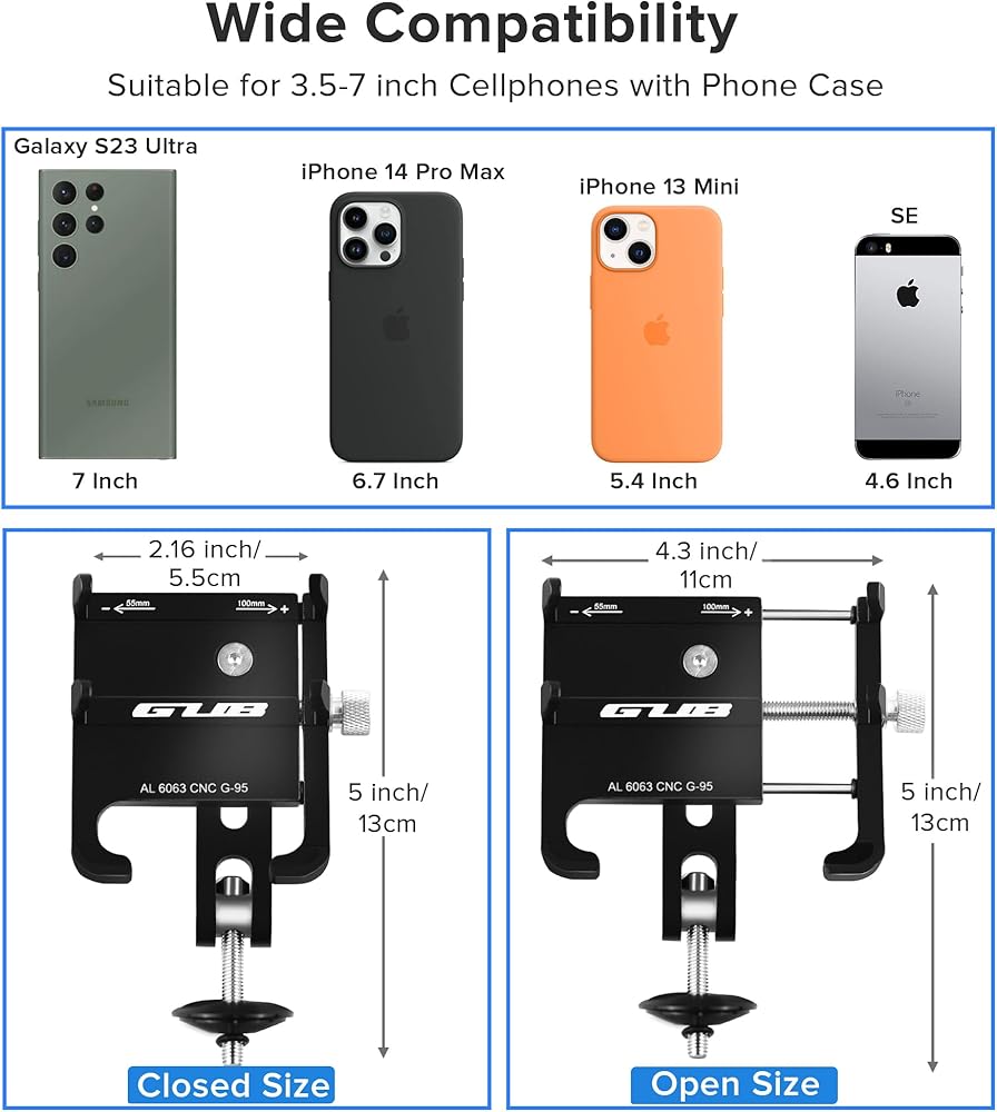 توافق أوسع: حامل هاتف الدراجة GUB متوافق مع جميع الأجهزة مقاس 3.5-7 بوصة بسمك يصل إلى 17 مم/0.67 بوصة (بما في ذلك الحافظة)، مثل iPhone، Galaxy S20/21/21 Ultra/22/22Ultra/Note10/20، إلخ.