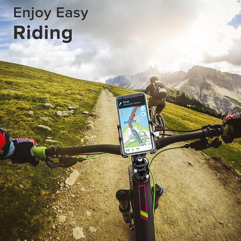 【سبائك الألومنيوم】حامل الهاتف الخاص بنا للدراجة مصنوع من سبائك الألومنيوم CNC، وعمر أطول. حتى عندما تركب بسرعة 75 ميلاً في الساعة أو على الطرق الوعرة، فإن دراجة حامل الهاتف تحافظ على هاتفك ثابتًا في مكانه.