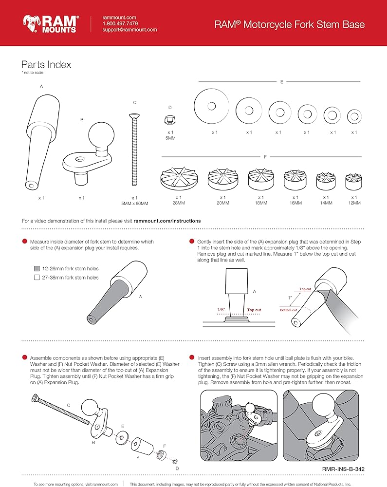 RAM يتصاعد دراجة نارية شوكة الجذعية الكرة قاعدة RAM-B-342U مع حجم B 1 "الكرة للسيقان 12 مللي متر إلى 38 مللي متر في القطر