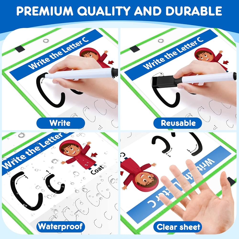 • اللوازم المدرسية - أوراق المسح الجاف القابلة لإعادة الاستخدام، جيوب حامل التذاكر تجعل من السهل تخزين مستنداتك القيمة ويمكنك تدوين الملاحظات عليها دون إتلاف الورق. مثالية للفصول الدراسية والمكاتب. يجب أن يكون لدى المعلم الفصول الدراسية