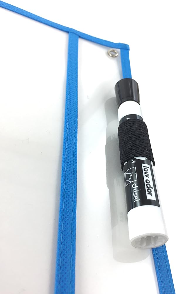 HIGH QUALITY - Made with high grade plastic and double sewn edges these worksheet sleeves are made to last. Features a convenient marker pen holder and corner metal grommet for easy hanging