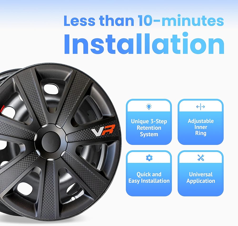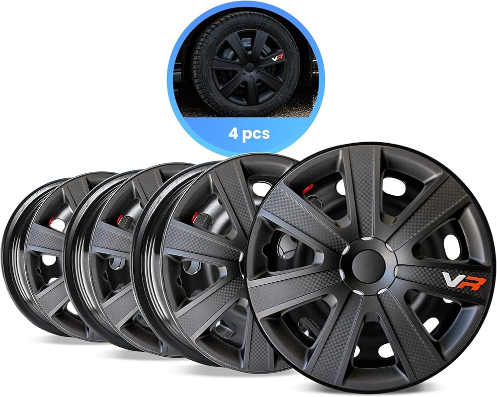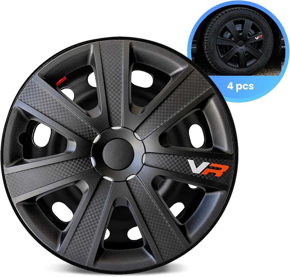 Alpena - أغطية عجلات كربون VR، أغطية حواف فاخرة مصنوعة في أوروبا مع نظام احتفاظ ثلاثي الخطوات، أغطية محور متينة 15 بوصة مجموعة من 4 قطع، تناسب معظم العجلات الفولاذية، أسود