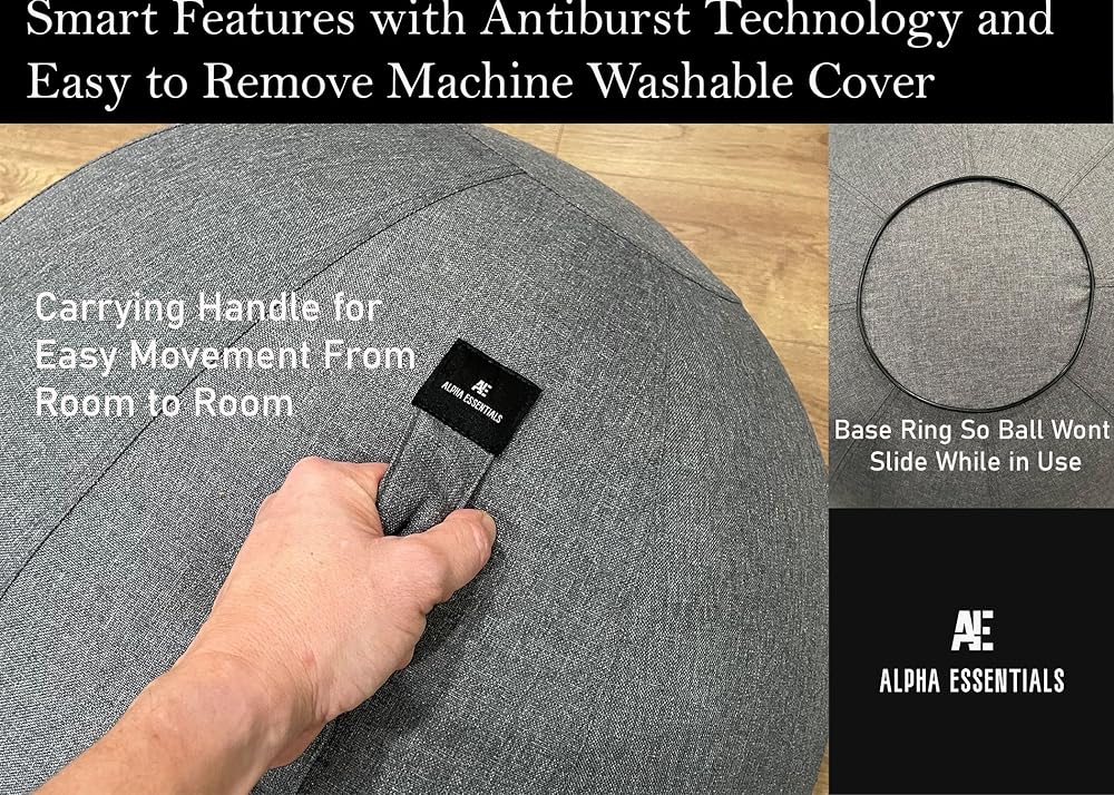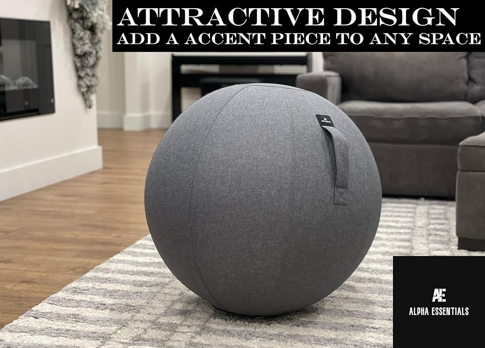 • تصميم عصري: تأتي كرة اليوجا هذه بغطاء من الكتان الجذاب الذي يضيف مظهرًا أنيقًا إلى أي مساحة. تحتوي على مقبض حمل لسهولة النقل من غرفة إلى أخرى وتضيف ملحقًا مريحًا وأنيقًا إلى أي غرفة.
