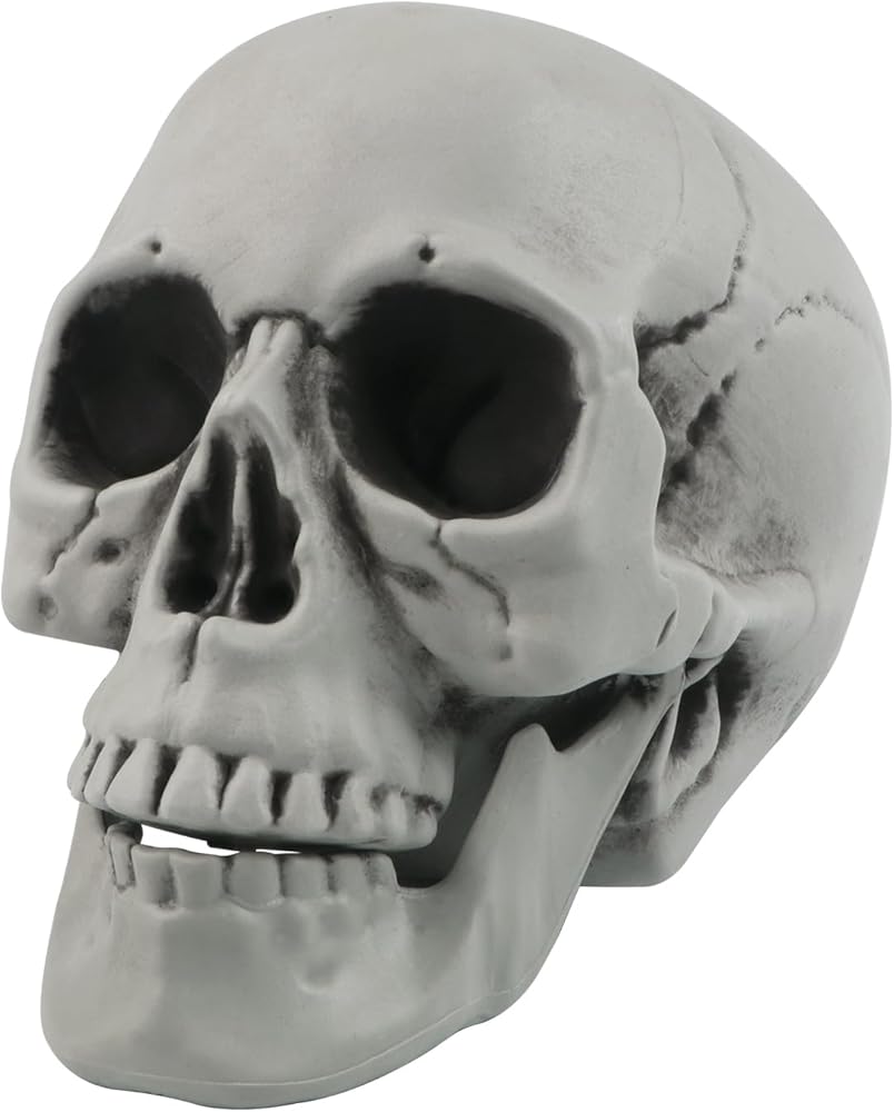 💀 ديكور رأس الهيكل العظمي - رؤوس جماجم الهالوين ذات الحجم البشري هي دعامة رائعة للهالوين، تحف غريبة لطيفة يمكن وضعها على الرف أو المكتب، وتعزز شاشات الطاولة والقطع المركزية والمزيد. الجماجم الهيكلية هي زخارف لا غنى عنها أو دعائم مخيفة لجميع القديسين.