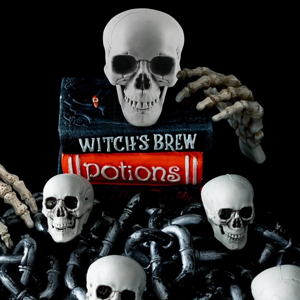 💀 اختيار مثالي للهالوين - رؤوس جمجمة الهالوين رائعة لديكورات حفلات الهالوين، ومفضلات حفلات الهالوين، والحفلات ذات الطابع الهيكلي، وديكورات الرعب للمنزل، وإكسسوارات منزل الجمجمة والمناسبات الأخرى. تُستخدم على نطاق واسع لديكورات حفلات الهالوين.