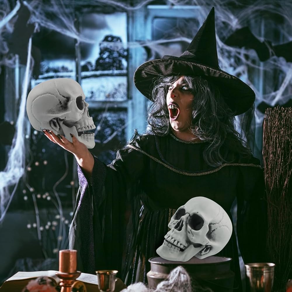 💀مناسبات واسعة - جماجم الهالوين ذات المظهر الواقعي رائعة للمنزل والطاولة ورف الموقد والتي يمكن أن تخلق جوًا غامضًا وغريبًا. تعد جماجم الهالوين أيضًا خيارًا رائعًا لمزاح أصدقائك أو كدعائم لالتقاط الصور. رائعة لحفلات الهالوين والترفيه المخيف والمناسبات الأخرى.