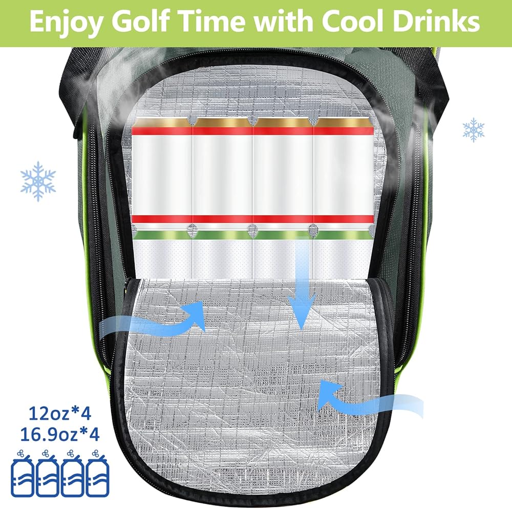 ⛳[جيب تبريد عازل] مع الجيب الأمامي المعزول من رقائق الألومنيوم، تساعدك أغطية حقيبة الجولف للسفر على الحصول على طعام طازج ومشروبات باردة إلى ملعب الجولف ومشاركة الأطعمة والمشروبات ذات المذاق المثالي مع الأصدقاء أثناء لعب الجولف.
