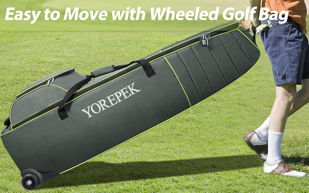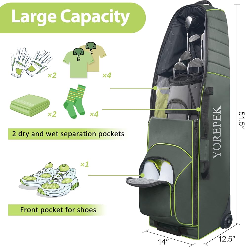 حقيبة سفر YOREPEK للجولف لشركات الطيران مع عجلة، حقيبة سفر مبطنة حول الجزء العلوي لحماية النوادي، أغطية سفر للجولف شديدة التحمل مقاومة للماء 900D مع 3 جيوب كبيرة للأحذية والإكسسوارات