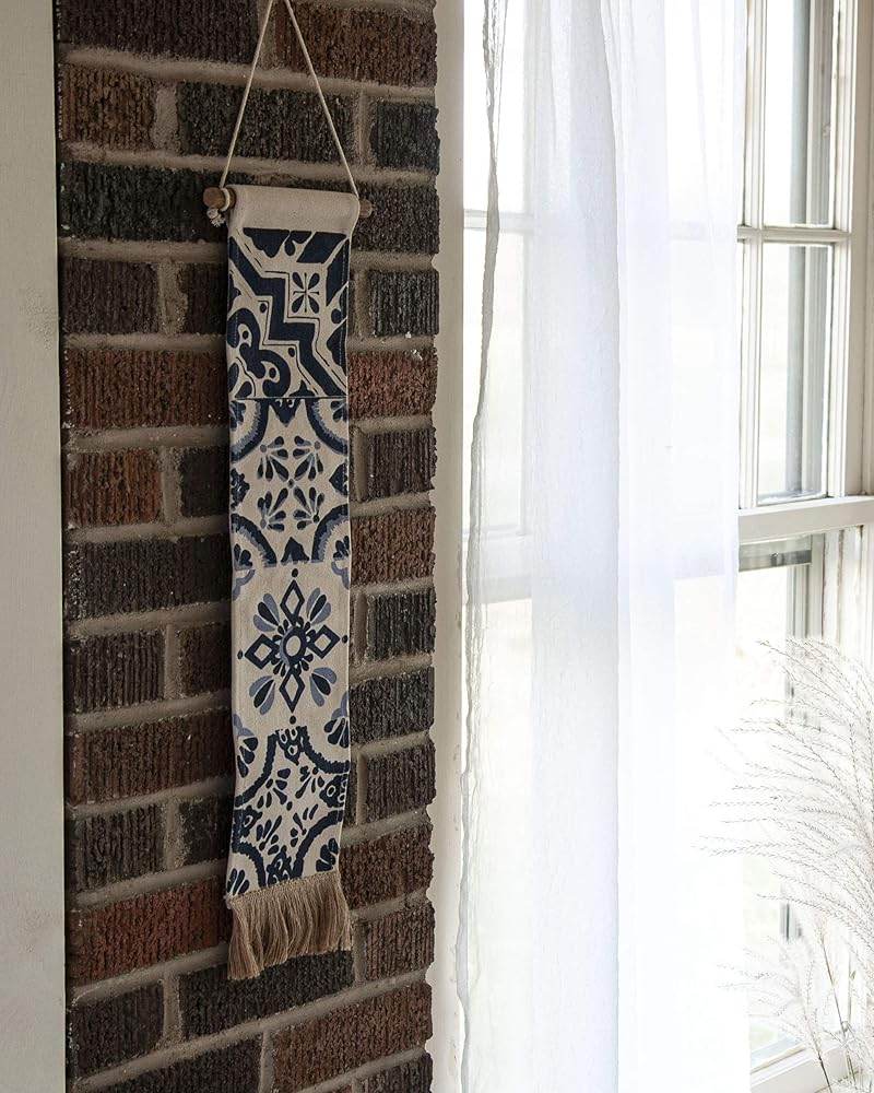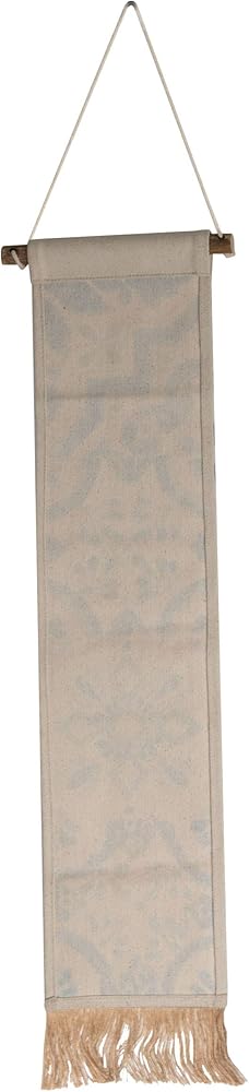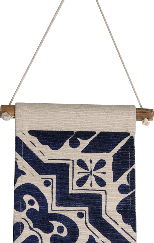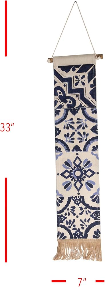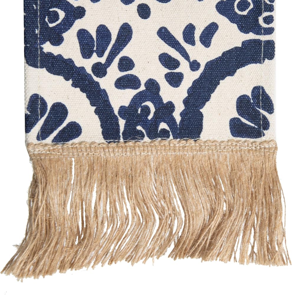 Add some texture to your walls with the Zocalo Wall Hanging. Natural cotton is printed with a Foreside exclusive tonal blue pattern, finished with jute fringe at the bottom to add dimension. The pattern is inspired by vintage hand-painted clay tiles.
