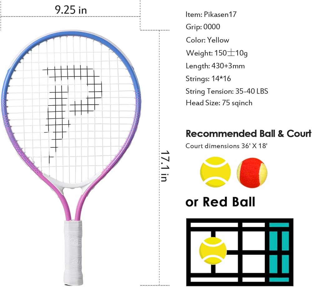 👍 غطاء مضرب نايلون 420D عملي: يحتوي مضرب التنس الشبابي PIKASEN مقاس 17 بوصة على حقيبة حمل بغطاء مضرب تنس 3/4 رأس. هناك ميزة خاصة تتمثل في أنه يمكنه تحسين قوة طفلك وخفة الحركة في التأرجح إذا لعب المضرب بغطاء الرأس مباشرة. يجب عليه التغلب على مقاومة غطاء الرأس. وبعد أن يتقنوا ذلك، يمكنهم تسديد الكرة لمسافة أبعد وأقوى. نصائح ودية: يجب على الأطفال الإحماء مسبقًا.