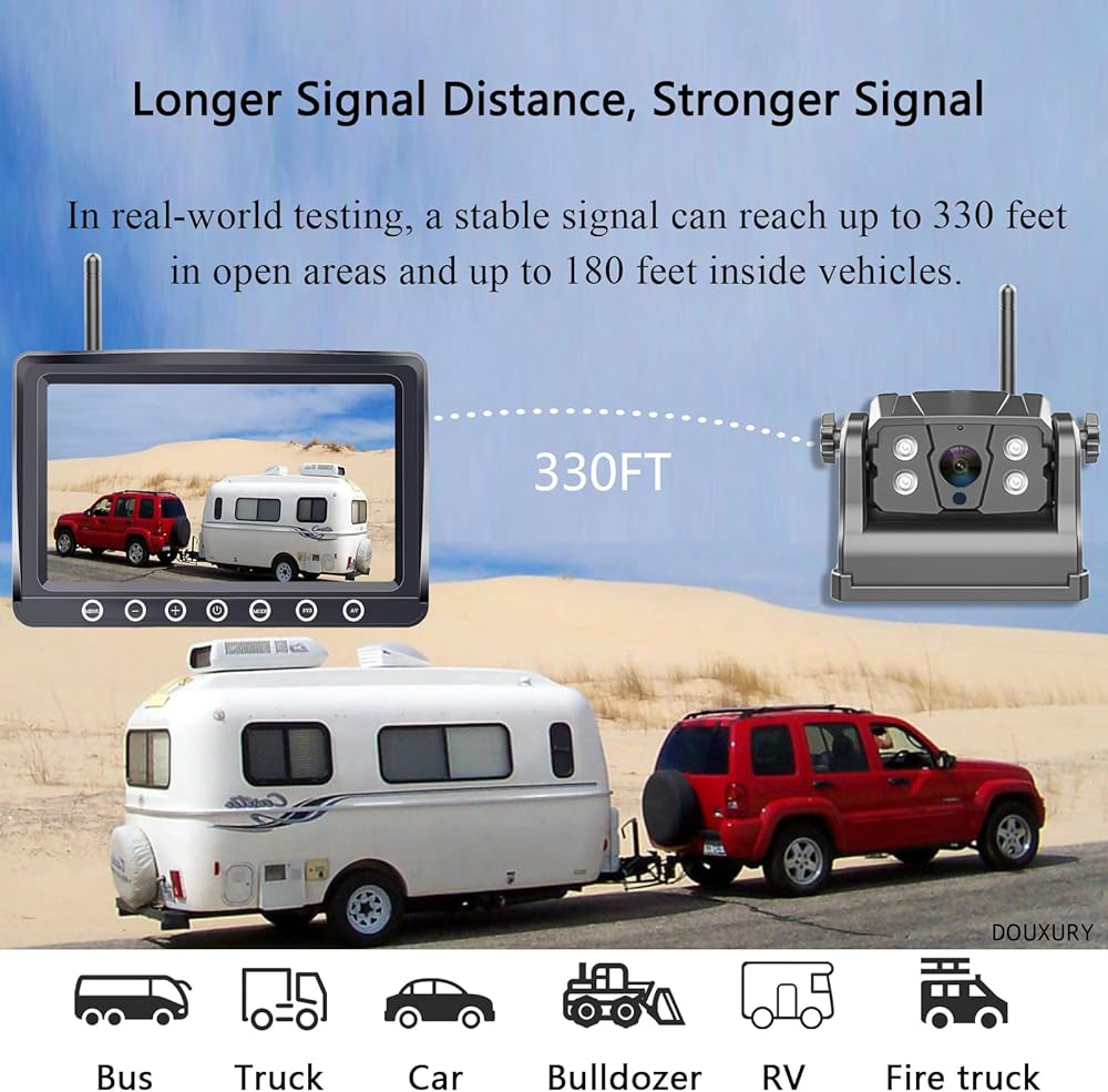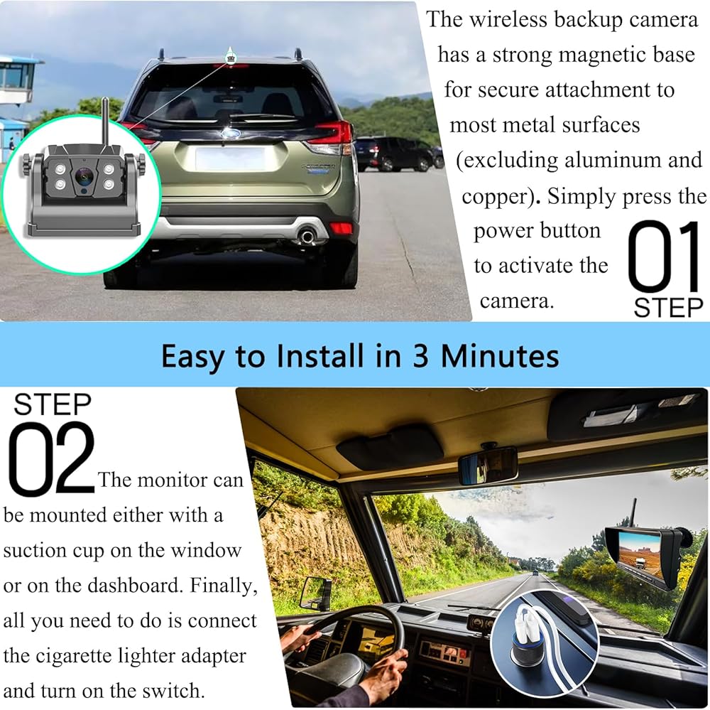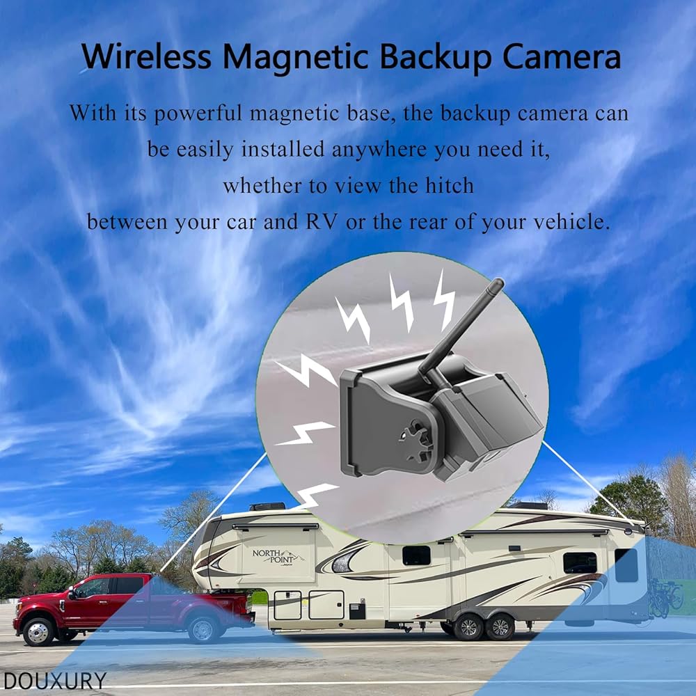 · باستخدام أحدث شريحة رقمية، توفر الكاميرا الاحتياطية المغناطيسية اللاسلكية إشارة رقمية قوية للغاية بمدى يصل إلى 330 قدمًا، ويمتد إلى 825 قدمًا في المناطق المفتوحة.