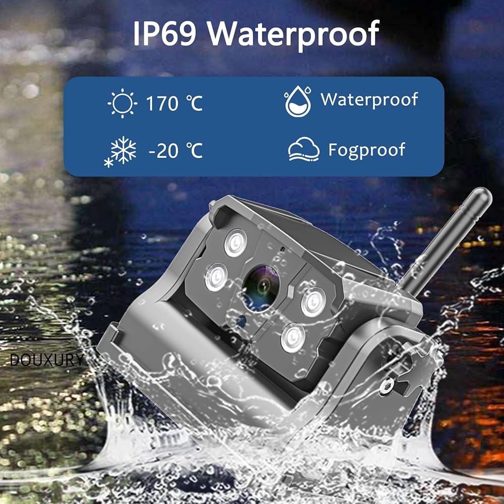 · بفضل تقنية الختم المحسنة، تحقق هذه الكاميرا الاحتياطية المغناطيسية تصنيف IP69 لمقاومة الماء، مما يضمن المتانة والأداء الموثوق. يمكنها تحمل درجات الحرارة القصوى التي تتراوح من -32 درجة فهرنهايت إلى 187 درجة فهرنهايت، وتظل العدسة واضحة وخالية من الضباب.