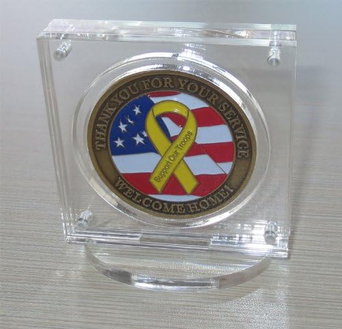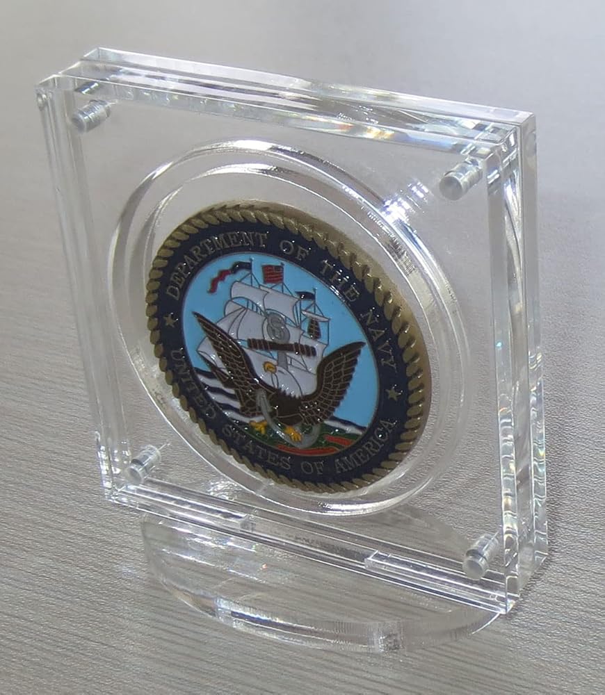 Elegant Clear Acrylic Challenge Coin/Poker Chip Display Case Holder with Stand with Magnetic Fasteners for a 1.75" Coin."