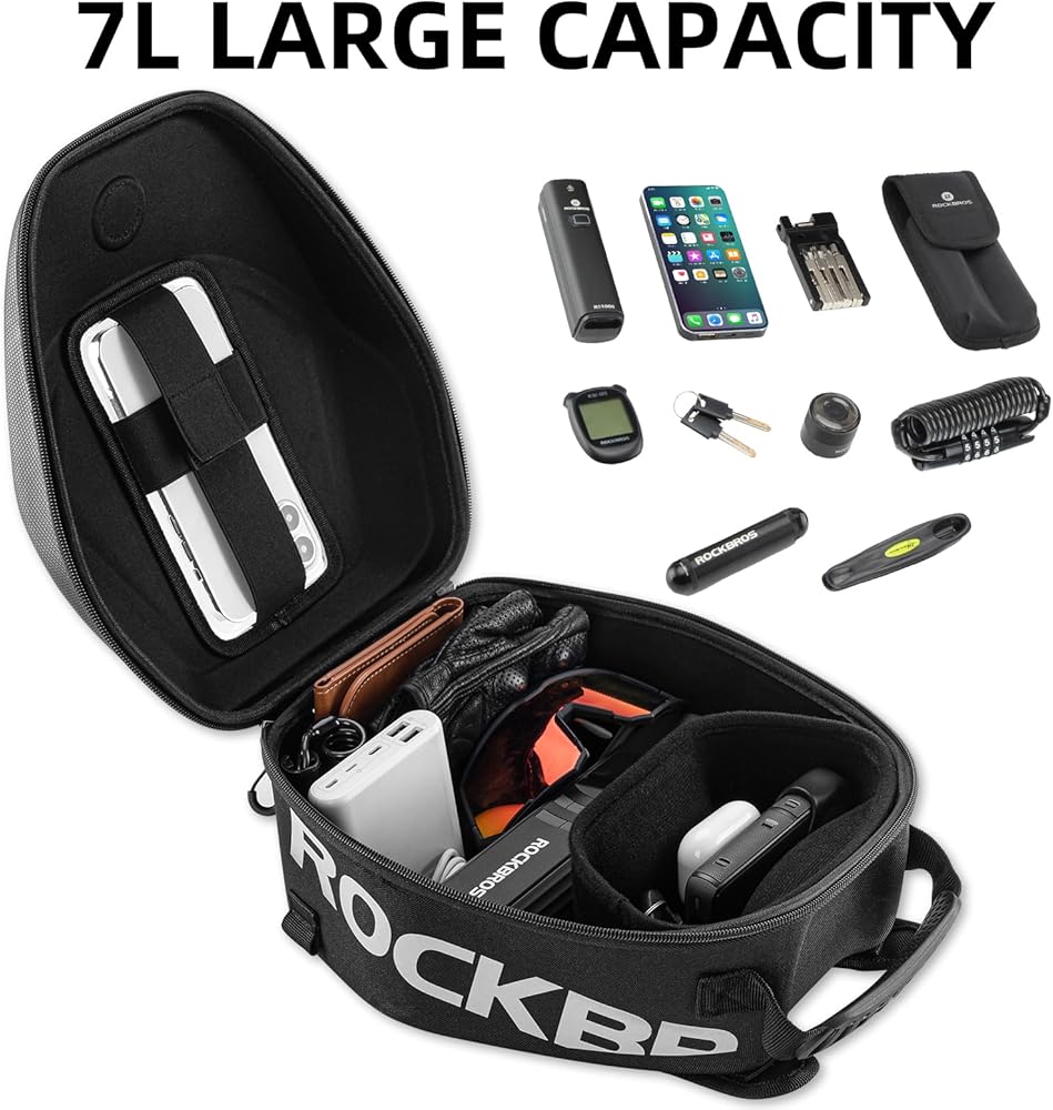 سعة كبيرة 7 لتر: تحتوي حقيبة الخزان هذه على مساحة تخزين كافية لاستيعاب ملحقات ركوب الدراجات التي تحتاجها بشكل مثالي (القفازات، والنظارات، والهاتف الخلوي، والبطارية القابلة لإعادة الشحن، وما إلى ذلك). يعمل تصميم التخزين المدروس على تحسين استخدام المساحة داخل الحقيبة. سعة كبيرة 7 لتر يمكن أن تلبي احتياجاتك المختلفة أثناء الرحلة، مما يجعل رحلتك أكثر راحة وراحة.