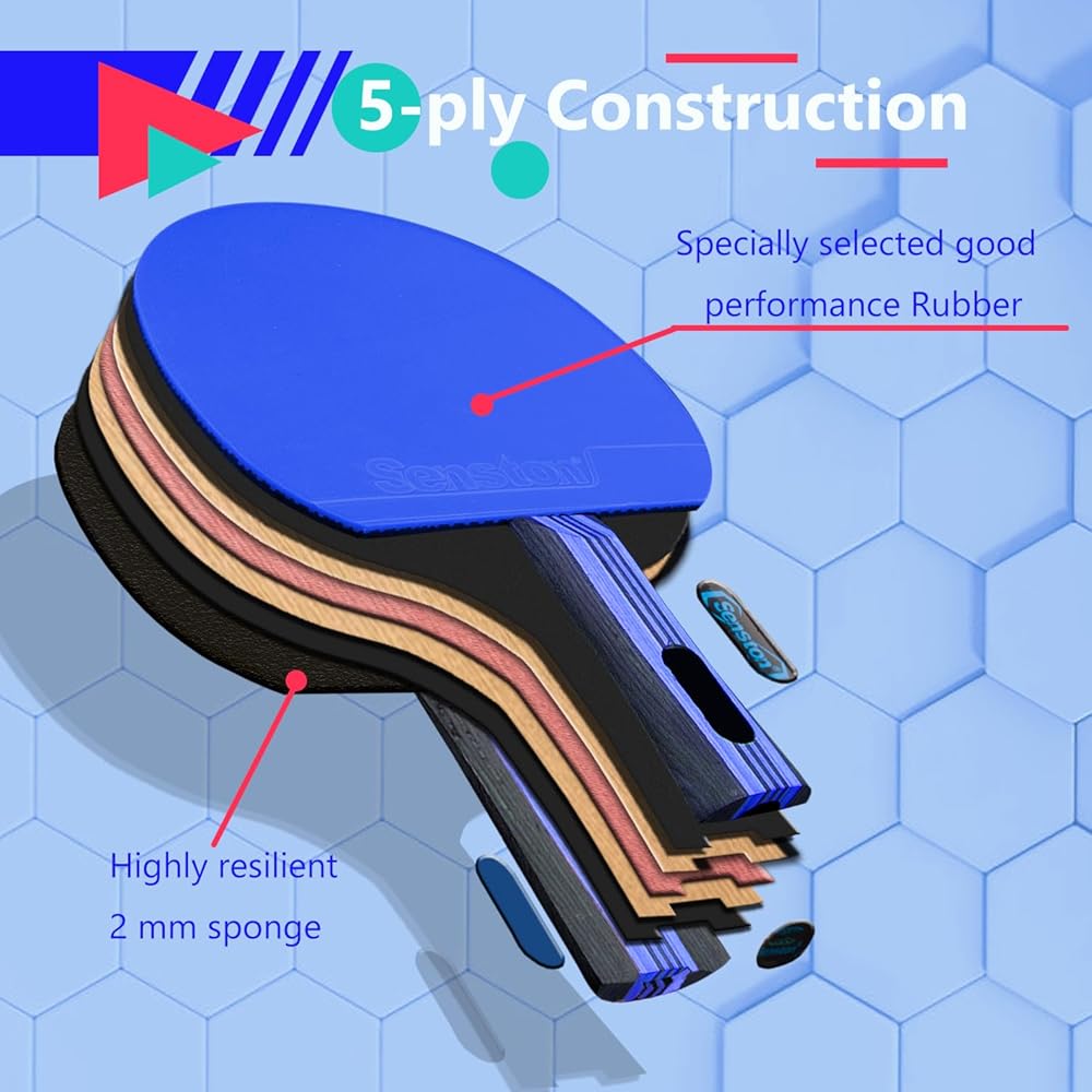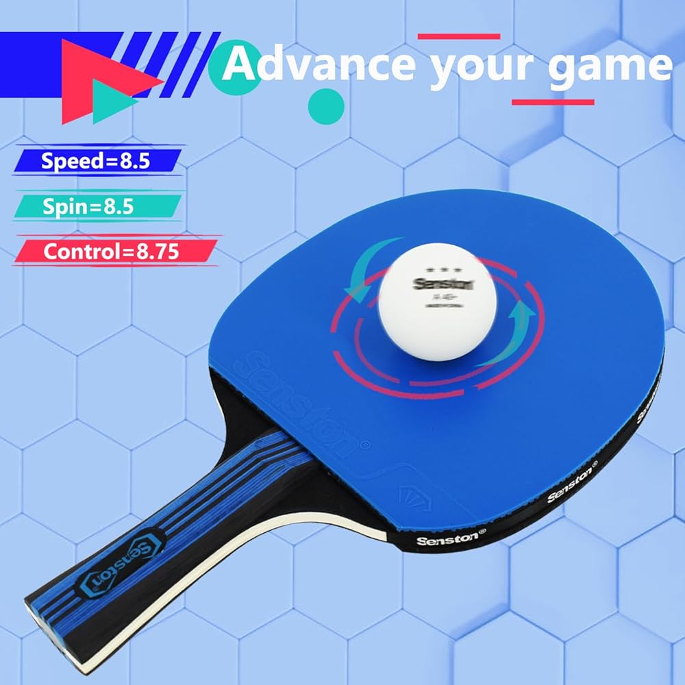 ★ قبضة ممتازة ★ مضرب بينج بونج سينستون بمقبض مريح (حامل) لقبضة مريحة أثناء الجلسة الطويلة. المقبض الخشبي متوهج لتوفير الراحة مع أداء جيد لامتصاص العرق ويوفر تحكمًا لا يصدق في الكرة.