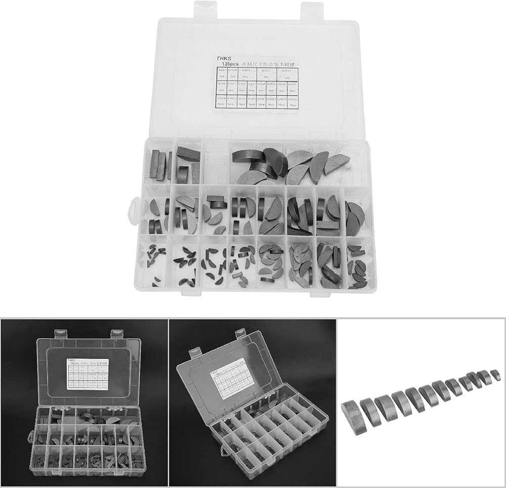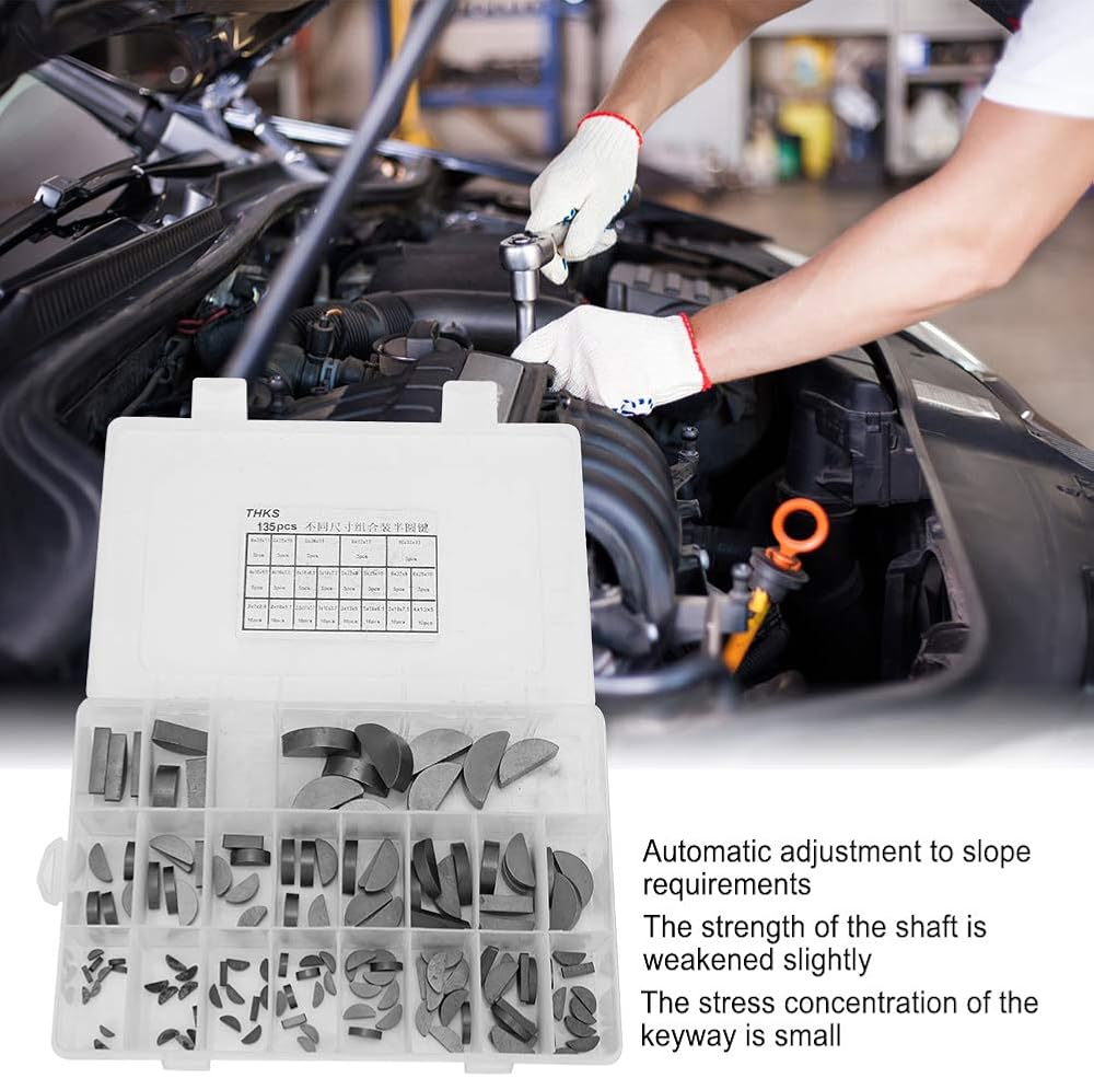 【21 Different Sizes】The set including 21 kinds of woodruff key, 135 pieces in total, to meet different requirements. Lighter weakening of the shaft and keyway stress concentration is small.