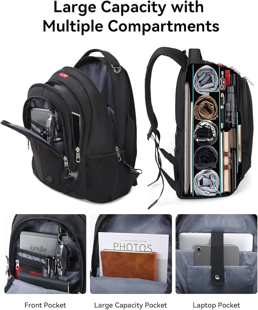 سفر على ظهره على ظهر سفر كبير مقاومة للماء محمول للكتاب ، فائدة العمل ، العمل ، والأعمال التجارية اليومية ، كما أن حقائب الظهر المحمولة المحمولة تحمل على حقيبة كمبيوتر محمول من مكتب الكمبيوتر ، وتناسبها 17.3 "كمبيوتر محمول ، أساسيات السفر للرجال للنساء