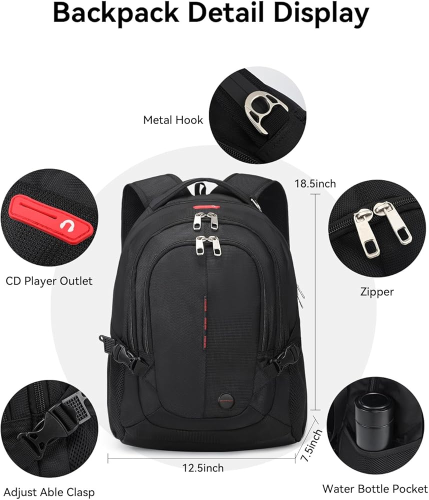 ▶ حقيبة أمتعة وجيب مخفي: حقيبة ظهر جامعية محمولة ومتينة مقاس 15.6 بوصة مع منفذ سماعات الرأس ويمكن استخدامها للاستماع إلى الموسيقى أثناء المشي أو ركوب الدراجات. حقيبة الكمبيوتر المحمول هذه مع جيب مخفي مضاد للسرقة في الخلف، يمكنك ترك متعلقاتك هنا. تتميز بحزام الأمتعة على ظهرها، يمكن لمسافر العمل أن يناسب حقيبة الظهر الكبيرة مباشرة على حقيبة الأمتعة، مما يحرر يديك من السفر السعيد إذا كانت لديك أي مشكلة يرجى الاتصال بنا، وسوف نقوم بالرد عليك في غضون 12 ساعة.