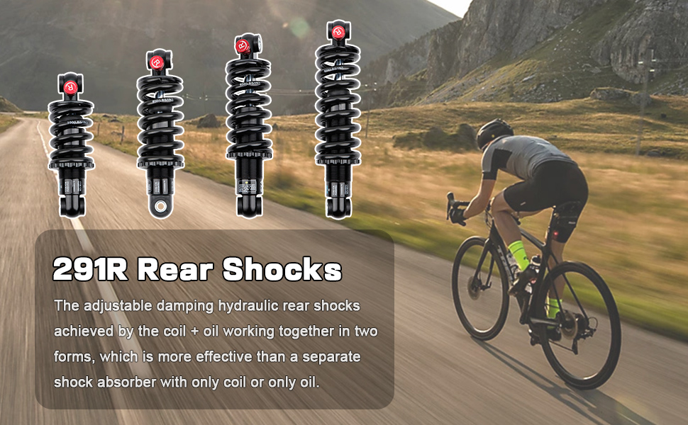 تطبيق واسع: نظام تعليق الصدمات الخلفي بالزيت + الملف اللولبي مناسب للدراجات الجبلية والدراجات القابلة للطي والدراجات الكهربائية والدراجات البخارية.